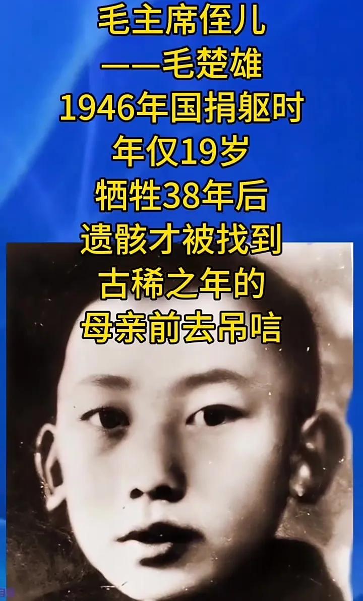 1946年毛楚雄被秘密杀害!他是毛主席的侄子。 1927年9月8日出生,是毛泽覃与周文楠之子,毛泽东之侄,原籍湖南省湘潭县,生于长沙,从小由外祖母抚养成人。他小时刻苦好学,热爱祖国,决心“继父之志,报父之仇”,“做一个改革社会的人物”。1945年9月,在湖南参军,加入王震率领的359旅,后任中原军区干部。 1946年6月29日,参加中原突围,随359旅自湖北大悟县宣化店出发,经湖北、地到达陕南。8月10日,在护送张文津、吴祖贻等赴西安参加和平谈判的途中,在陕西省宁陕县东江口镇被国民党部队截留,蒋介石授意胡宗南“就地秘密处决”,一行四人惨遭杀害,时年19岁。让我们记住这些英烈吧!