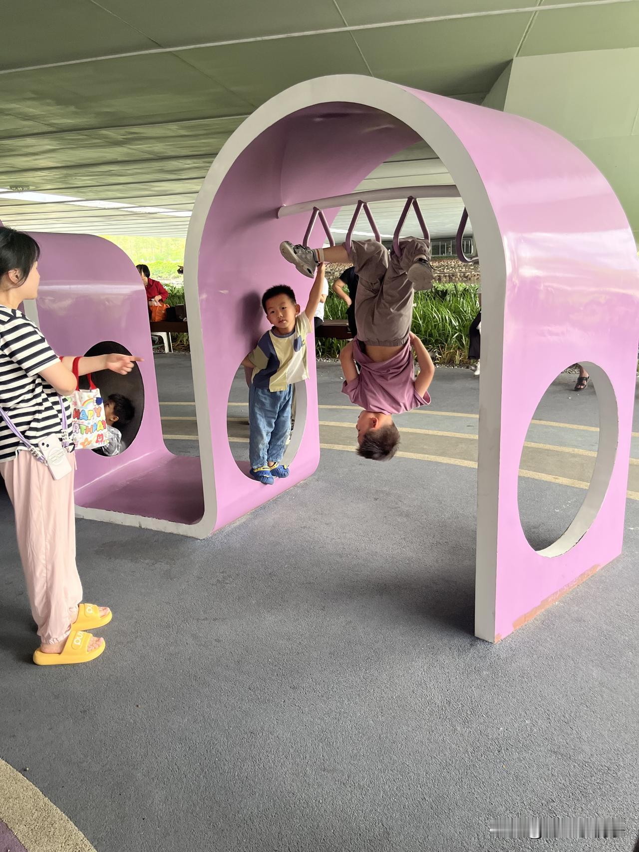 今天带娃来这个桥下公园,这儿的粉色游乐设施也太吸睛了! 你看这俩小家伙,一个在那儿倒挂金钩,跟小猴子似的,玩得可开心了;另一个站在旁边,好奇又羡慕地看着。旁边的妈妈一边指着孩子,一边笑着,满眼都是宠溺。有个小朋友在洞洞里躲猫猫,这场景也太有生活气息了。 在这儿,大人小孩都能找到乐趣,看着孩子们这么开心,感觉周末的疲惫都被治愈了,这种充满烟火气的日常,真的很让人满足。晒图笔记大赛亲子的美好时光
