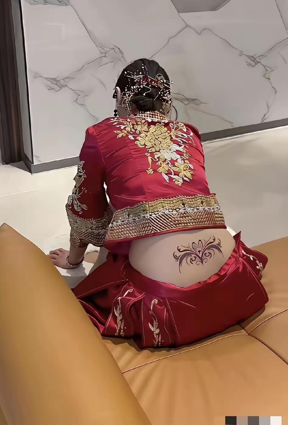 这么大的图案,纹起来痛死人,一般人都不会去做,估计是用纹身帖印上去的,很容易就洗掉,跟点美人痣,彩笔描眉,抹口红没什么区别,都是为了让自己好看点