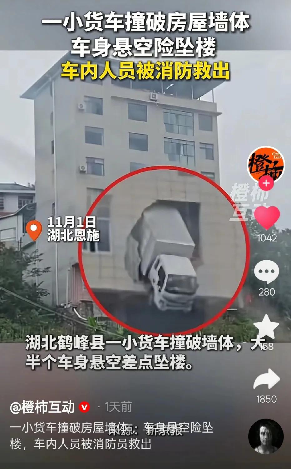 这种情况是怎么发生的?看不明白!车子是怎么钻进去2楼里面的?这么高的高度,就算车子速度太快“起飞”了,也想不通怎么会“飞”的这么高!而且撞出这么一个大洞,太危险了! 这辆车得怎么弄下来?用吊车吊下来么……还好人都没事!比较关心的是这家的房子主人,房子撞成这样一个大洞,不知道整栋楼会不会受影响?会不会成危楼了?大家觉得呢?
