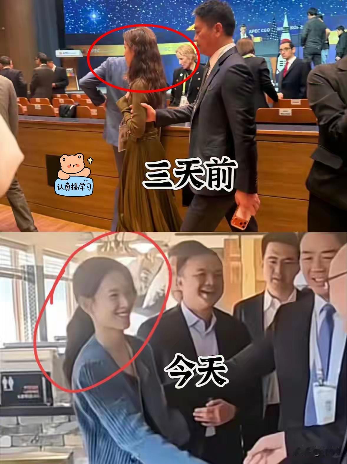 奶茶妹妹”章泽天一下子就老实了 前几天还气场全开,走在前面 让刘强东在后面宛若助理,今天马上就放低姿态了 简单的蓝条纹上衣配黑阔腿裤, 脚下踩双小白鞋, 就连三天前的大波浪都连夜拉直, 浑身透着“不张扬”的信号, 握手时微笑低头的样子, 之前的“大女主”气场彻底藏了起来。 不少人说她是怕了网上的舆论, 才急着放低姿态给足刘强东面子。 但其实这哪是服软? 章泽天从来都不是只靠外表撑场面的人, 她太清楚公众视线里的分寸感 过度张扬容易引争议, 适当收敛反而更显从容。 在感情和公众形象里找平衡, 从来都不是妥协, 而是聪明人算得清的利弊。 你们觉得章泽天这波转变是在意舆论,还是另有考量? 来评论区聊聊你的看法!