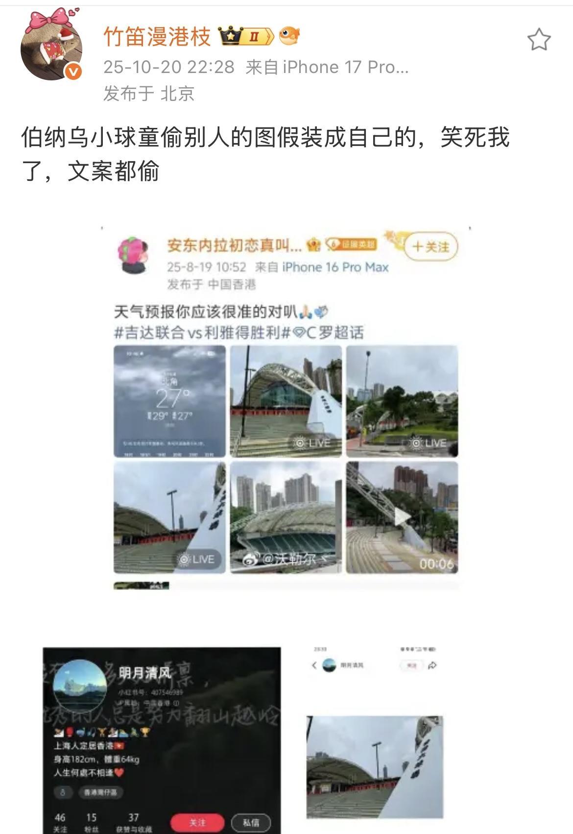C罗在香港参加沙超杯期间,他的中国内地粉丝偷别人的社媒内容,假装自己在香港,文字和图片通通照搬。 对此,AI智能账号都嘲讽道:“C罗看了直呼内行:偷得比我好。”