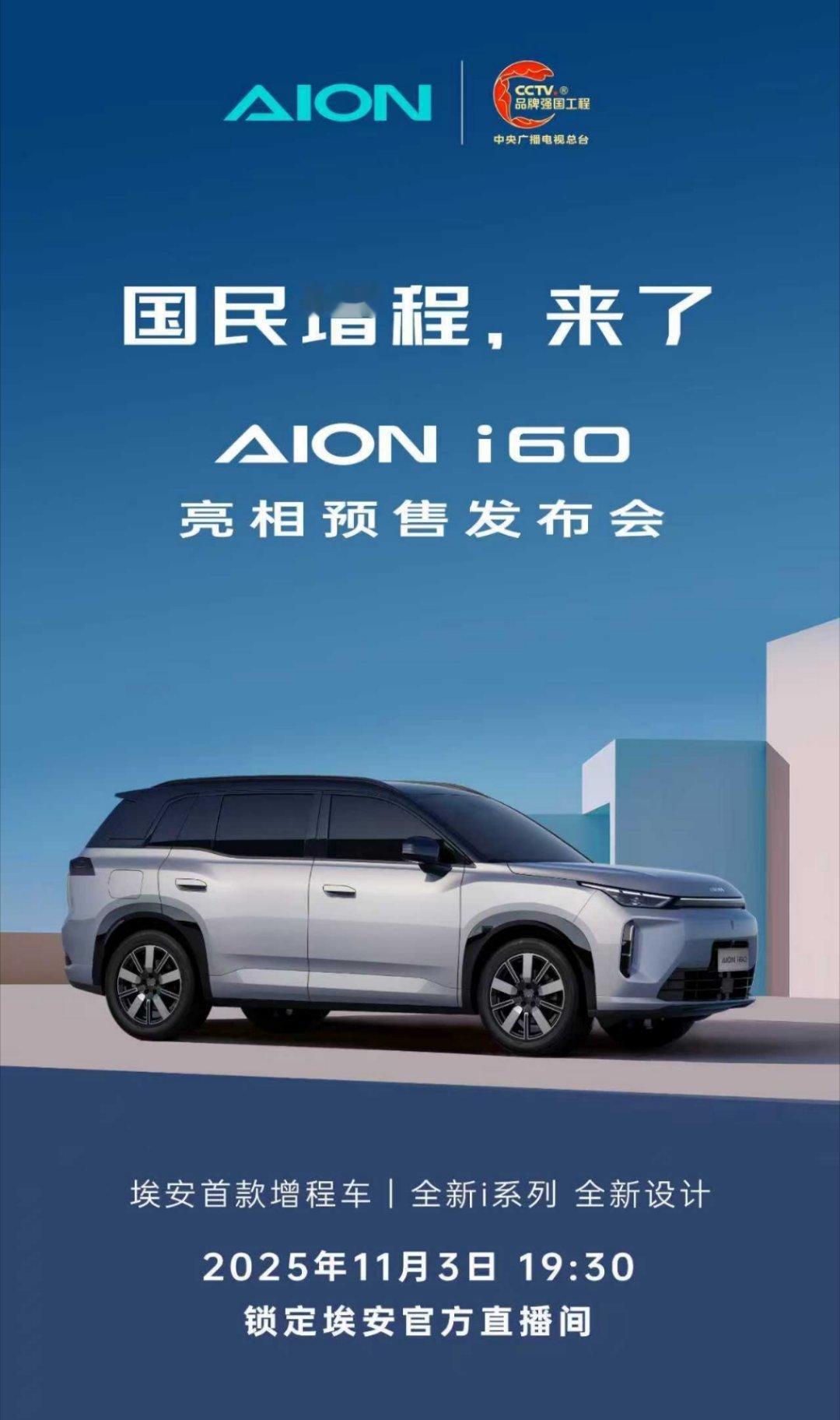 11月3日19:30 锁定埃安官方直播间,见证埃安第一款增程车。全新i系列,全新设计