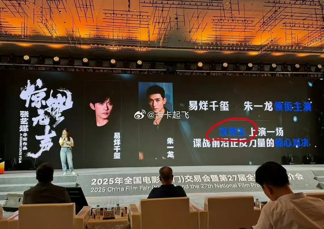 易烊千玺和朱一龙的🎬的推介会,把之前的双男主去掉了