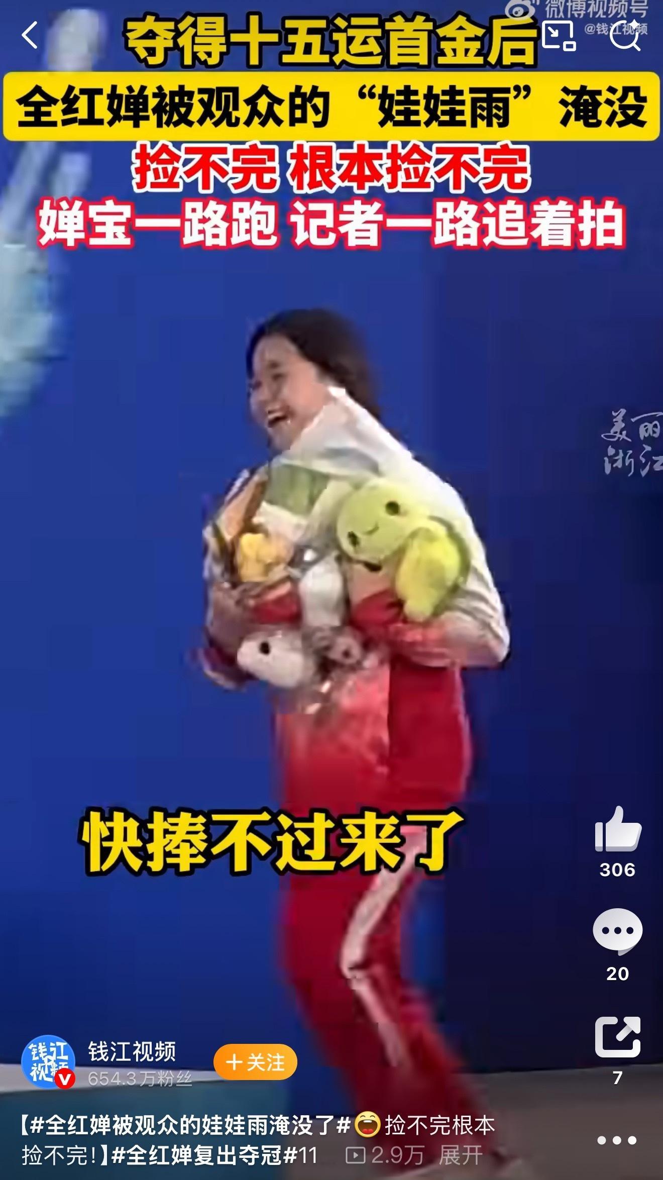 这娃娃雨是真的绝,捡到手软还捡不完!冠军配可爱,没毛病[哈哈]