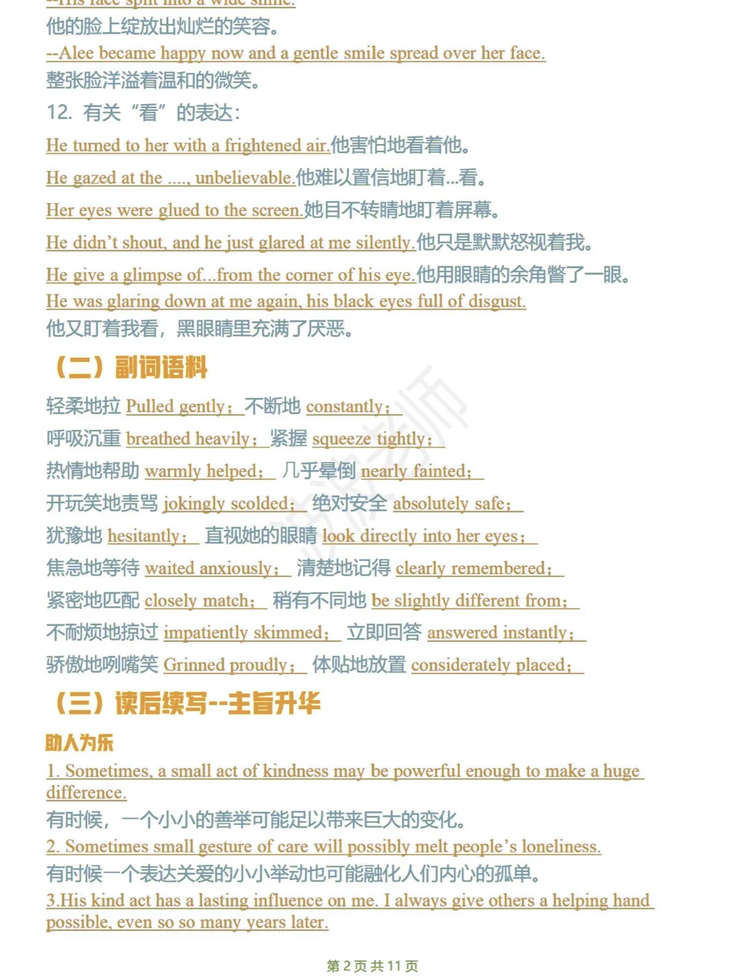 英语读后续写高分闪光句~~~~