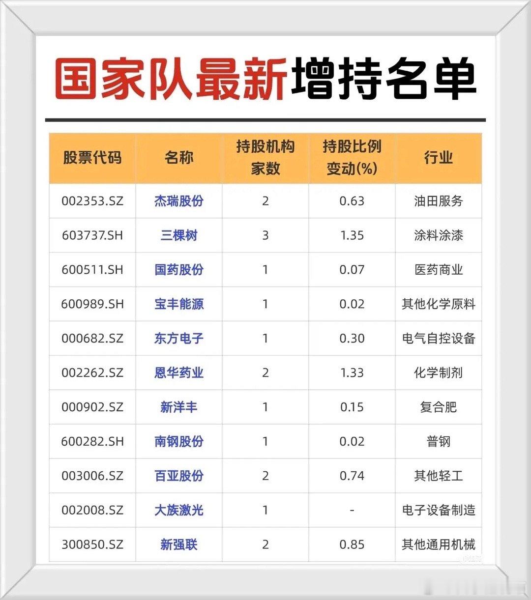11. 杰瑞股份(002353.SZ):油田服务,持股机构家数2,持股比例变动+0.63%