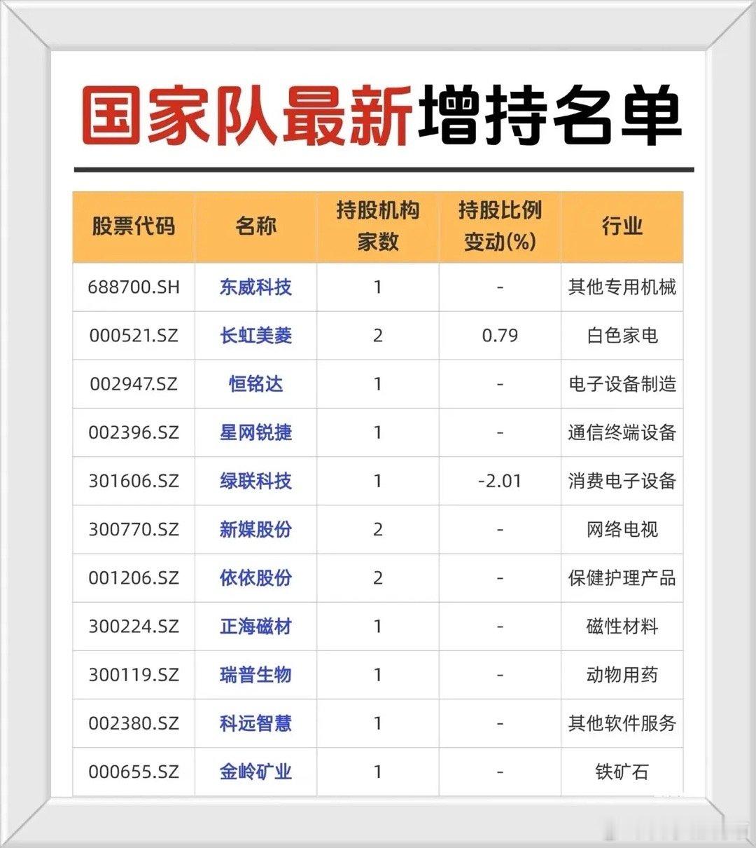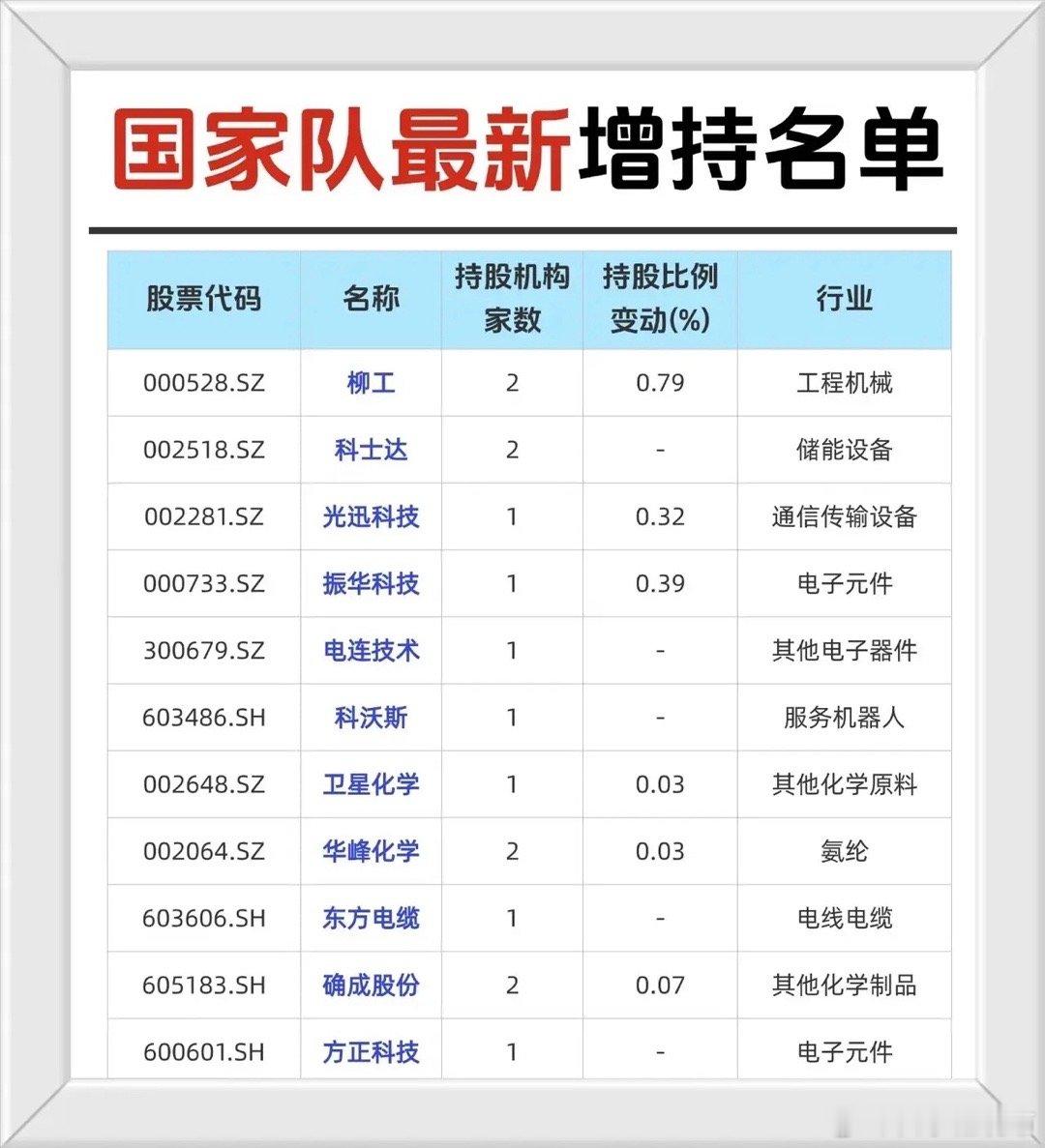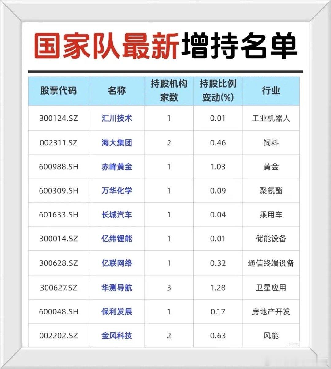 1. 汇川技术(300124.SZ):工业机器人,持股机构家数1,持股比例变动+0.01%