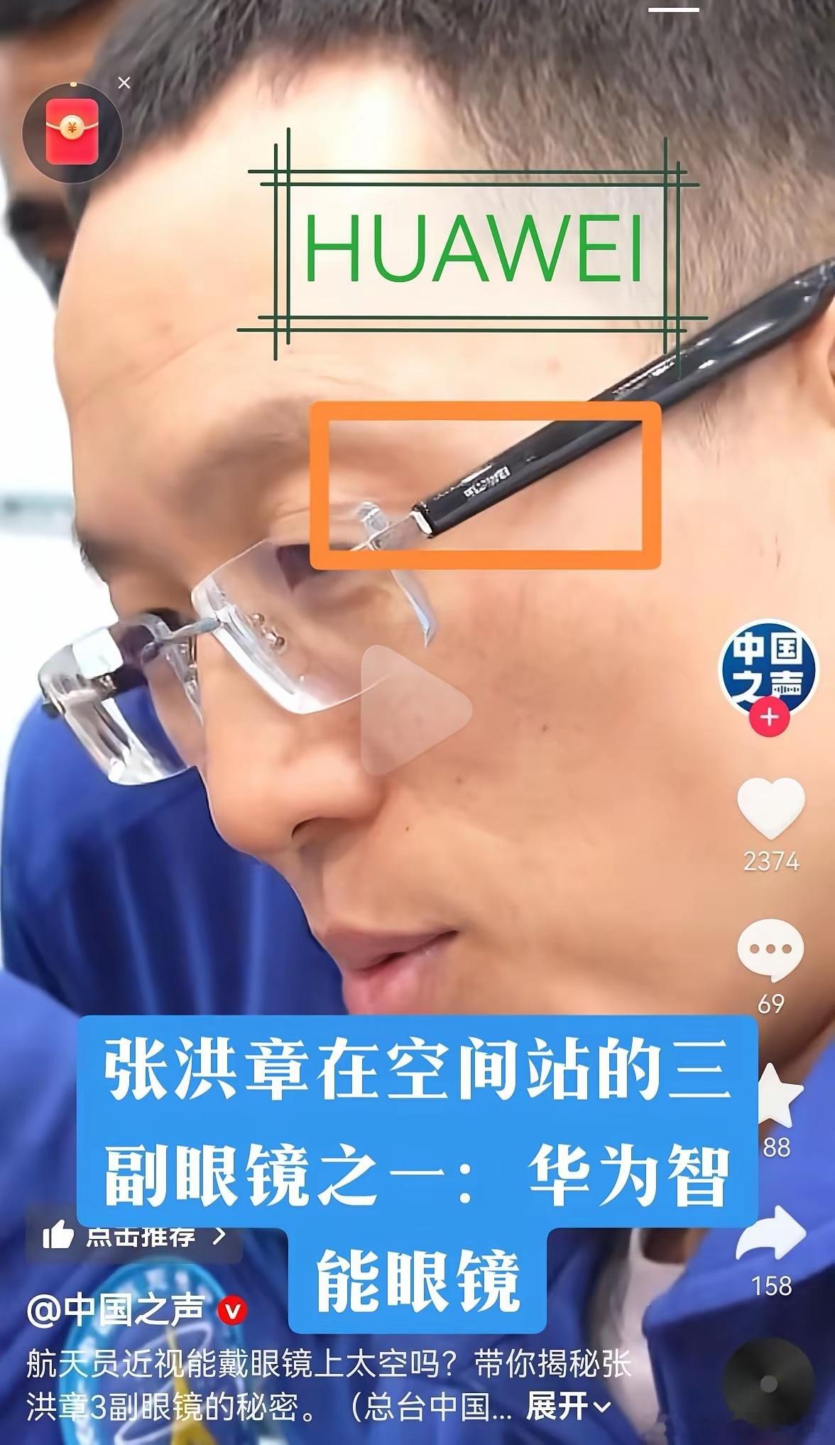 载荷专家张洪章在空间站的三副眼镜之一:华为智能眼镜二代,华为智能眼镜好久没更新迭代了……
