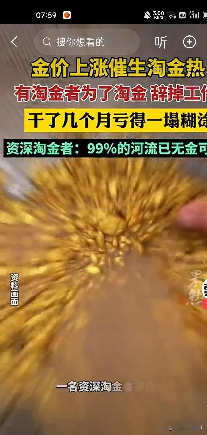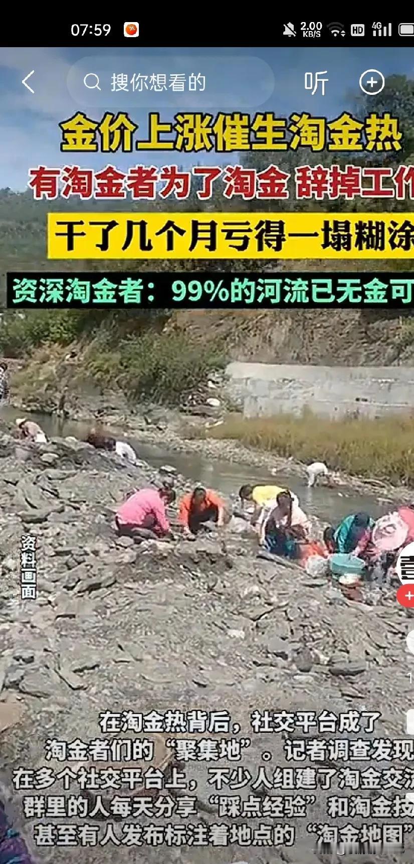 你还别说, 淘金的人挺多的 三五成群,他们有交流群 但收入如何? 收入肯定有 与花费相比,可能就捉襟见肘了 路费油费,人工费, 还有自己的辛苦费, 算起来几个月可能白干了, 晒得黝黑 倒是把身体练好了 但这种淘金方式纯属娱乐, 好的金矿矿脉和河流里面, 真正有金的, 早就被专业公司挖走了 哪轮到你?淘金行业 淘金工 工地淘金 海外淘金 黄金淘金 淘金工