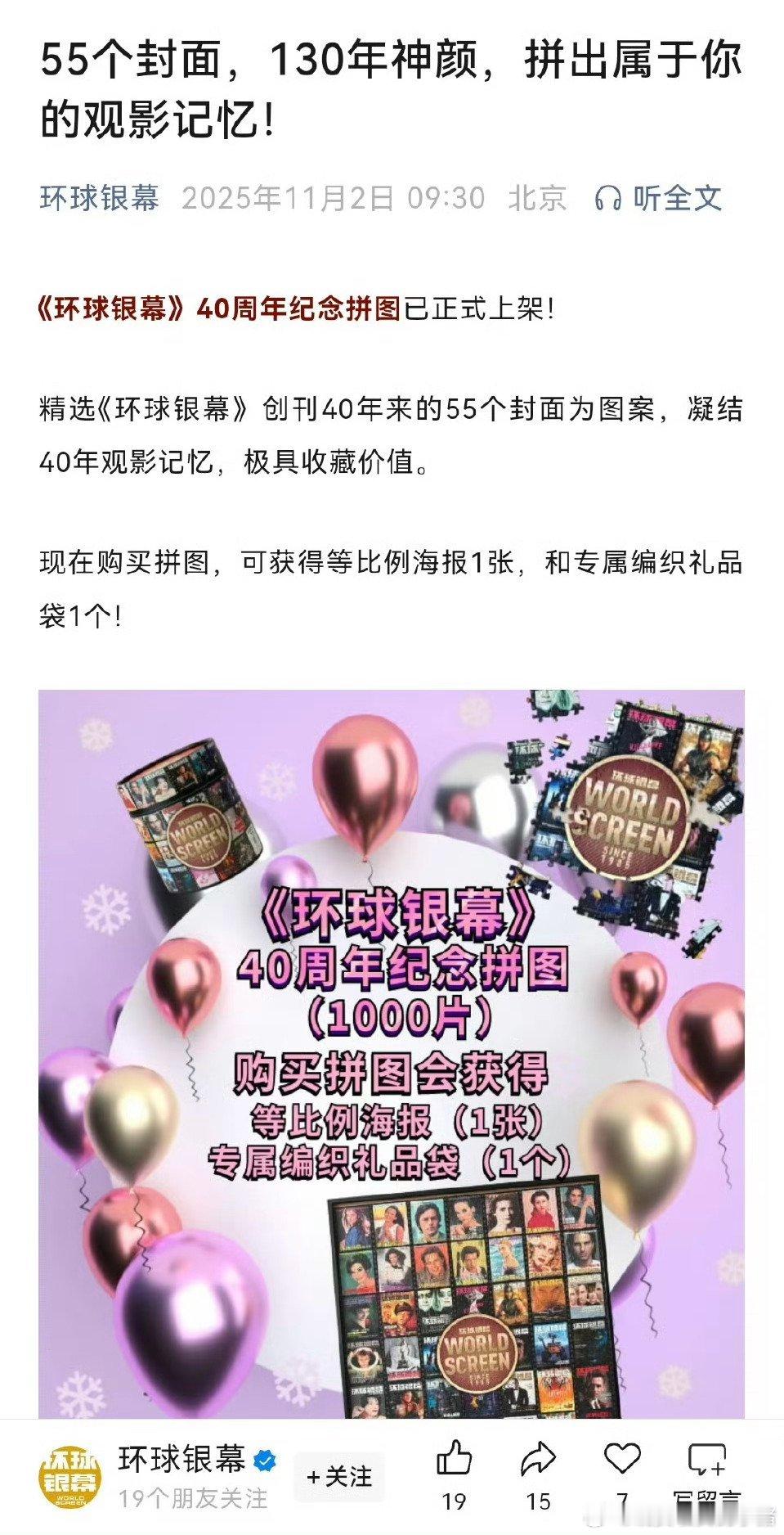 于适登上《环球银幕》40周年封面拼图,成为130年以来唯一华人男星,也是杂志创刊至今唯一华人二登封面! [耶]