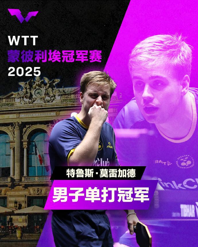 WTT蒙彼利埃冠军赛男单决赛,4-0战胜松岛辉空,夺得WTT男单冠军。