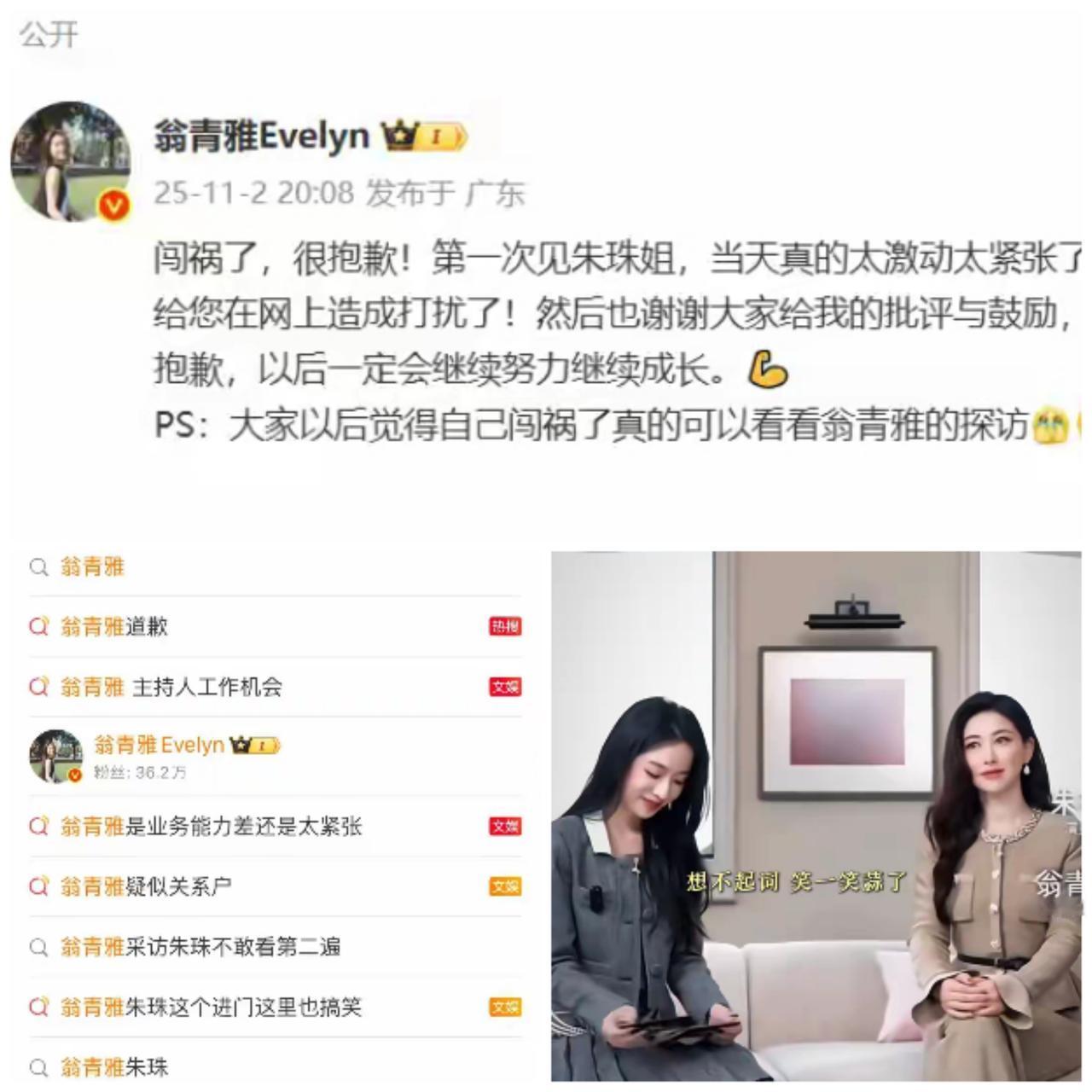 翁青雅访珠翻车 翁青雅致歉认错 翁青雅引牌删播 翁青雅评区失色 翁青雅