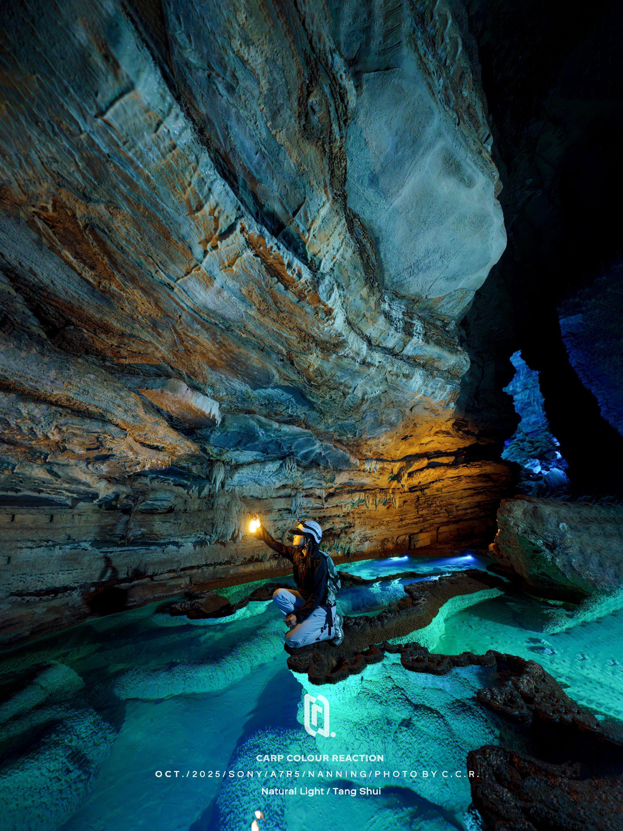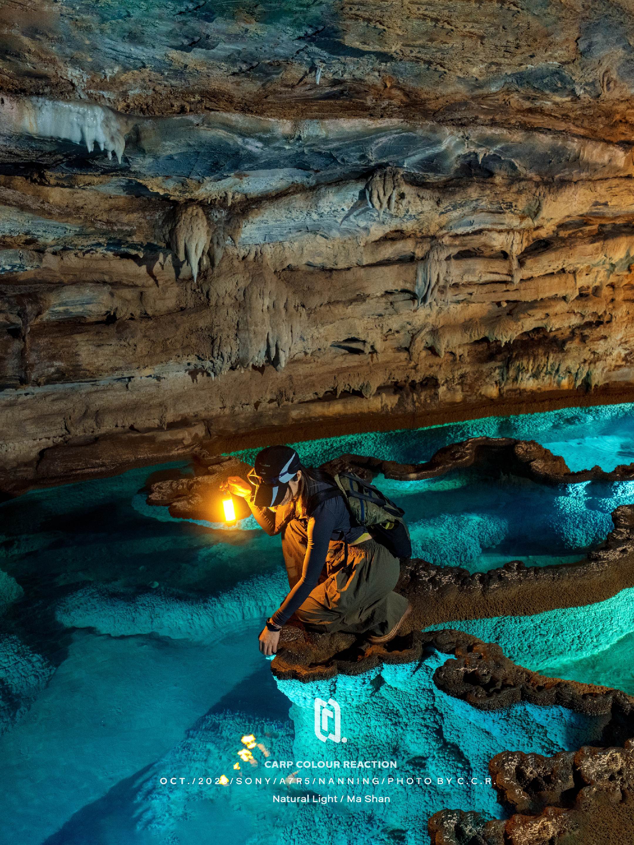 来广西玩你还没去过这个山洞?!摄影攻略:洞穴摄影怎么拍? 1. 勘察:进入洞穴后,先花时间用眼睛观察,找到最想拍的场景。 2. 架设:在安全稳固的位置架好三脚架和相机。 3. 构图与对焦:构好图,用手动模式对焦在主体上。 4. 设置相机:M档,索尼a7r5为例快门1/15秒可以拿的住(洞穴人像),高ISO降噪打开。 5. 布光与拍摄:常亮灯控制好冷光和暖光,避免直射镜头,人拿着暖色户外灯。 6. 检查与调整:回放照片,检查直方图(确保没有过曝或死黑),根据效果调整快门时间或布光方案,再拍一张。