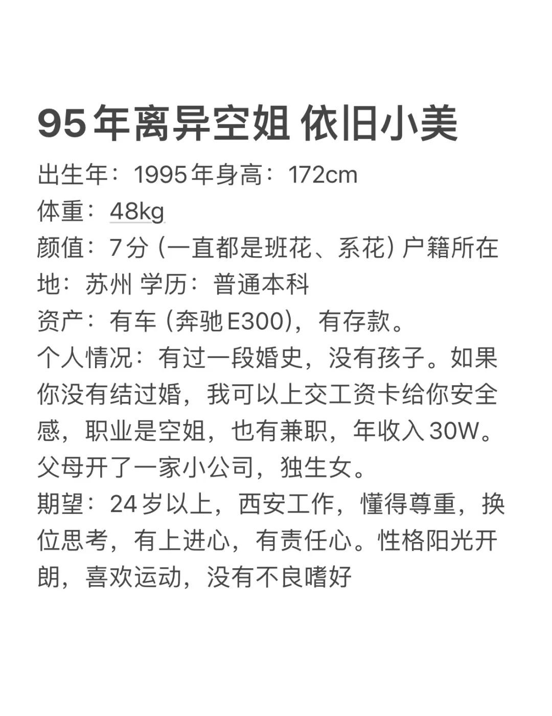 95年离异空姐 依旧小美 西安 非本人发帖 已征得本人授权同意 感兴趣滴