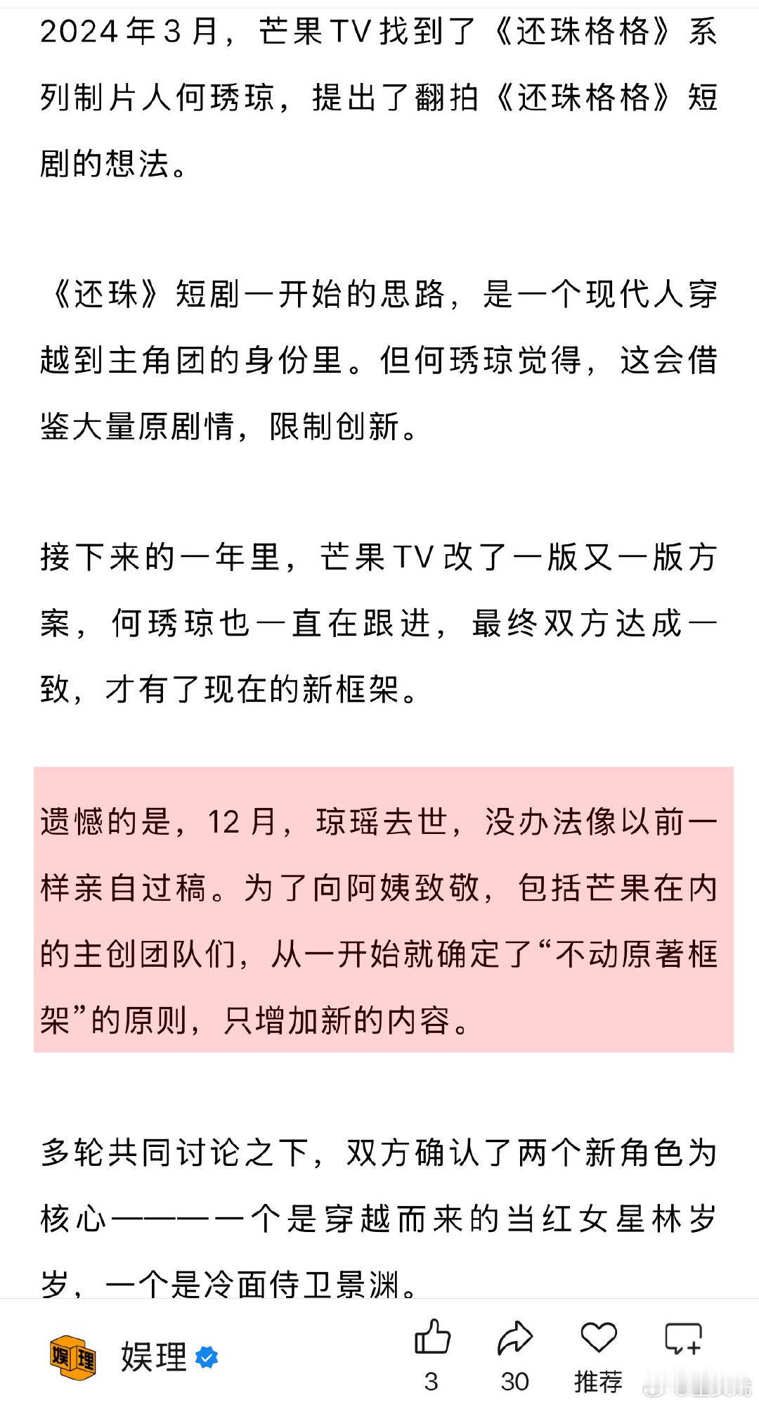导演谈短剧还珠选角罗一舟胡连馨 短剧还珠有罗一舟的荧屏初吻 从2024年3月得知《还珠格格》将被翻拍成短剧,到2025年3月短剧剧本打磨完成,跟完近一年的创作后,该系列制片人何琇琼很感动。“我知道这个IP一旦推出,一定是毁誉参半,骂声一片。但我既然决定试一次,就要了解它的游戏规则,做出一个对得起自己良心,不伤害《还珠格格》原著的作品,也欢迎大家批评指教。”娱理独家↓