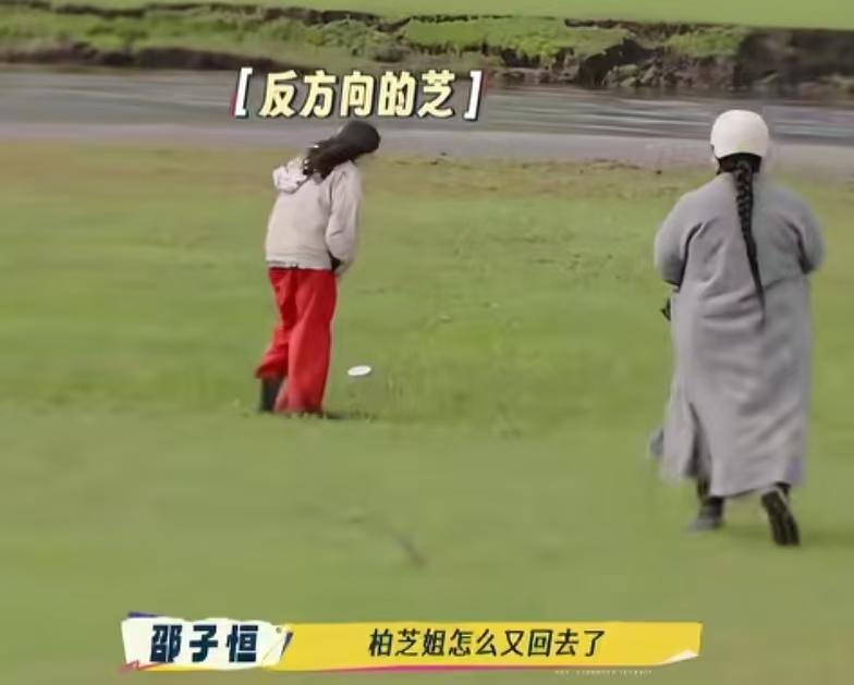 刘嘉玲往牧民家里走,张柏芝却往反方向走去捡垃圾!刘嘉玲:“我走,我喜欢走,走到走不动为止”,邵子恒:“柏芝姐怎么又回去了”,张柏芝:“垃圾”,张柏芝也是比较注重环境的卫生,优先去捡垃圾,即使踩到水里,也没关系 邵子恒担心回去晚了,姐姐们会生气,一直在耐心让张柏芝往回走 张柏芝说刘晓庆是最不会生气的那个,张柏芝捡垃圾也是越捡越起劲啊