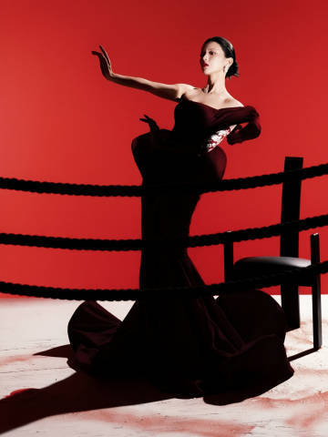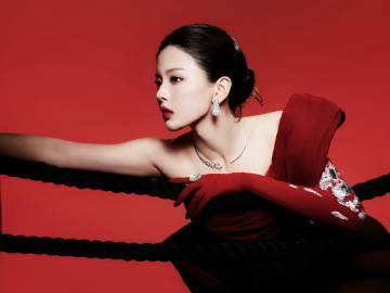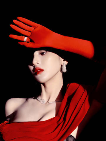 杨超越红黑礼服裙