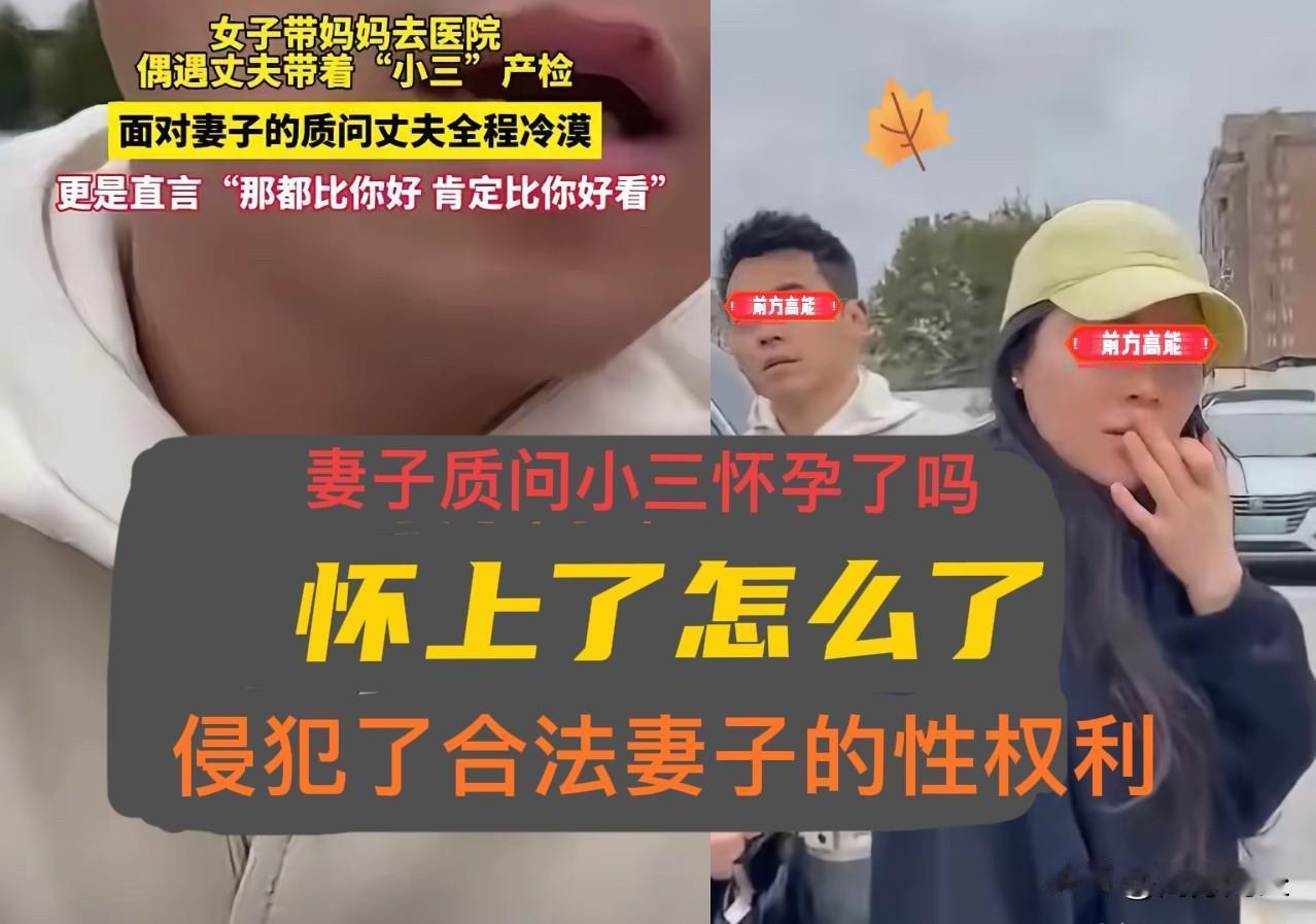 出轨男和小三:怀上了,怎么了! 上海一出轨男被老婆抓现行,出轨男嚣张的回应老婆,句句扎心,句句透露出无情。可见,两人关系冰冻三尺非一日之寒。 我们国家实行一夫一妻制,夫妻双方对于夫妻生活具有同样的权利和义务,这是法律给予婚姻关系的保障。 在夫妻双方还没有离婚的情况下,这名律师和别的女人发生关系,致其怀孕。 律师和小三的行为侵犯的是合法妻子的性权利。 律师不过是一种职业,相对来说,律师知法,懂法,但不代表他就一定会守法。