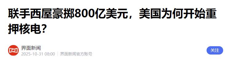 美国那边,突然砸了800亿美金,不是去搞芯片,不是去造飞机,而是去建核电站。你没