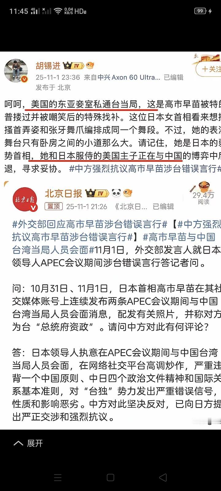 大v们也真敢说啊!卢克文说高市早苗像夜总会的妈妈桑,胡锡进就说高市早苗是特朗普的妾室,看来高市早苗在中国人心中的印象真不好啊! 高市也恐怕是自中日建交以来第一位未接到中方贺电的日本首相吧?这在隋唐之前,没有得到中国认可,那就相当于伪朝廷、伪政府,这事可就大了,不过现在日本认了美国当干爹,不承认中国这个亲爹了,对于这个不孝子,中国现在也懒的管了。 但如果高市拿台湾说事,给中国添堵,那我们就该敲打还得敲打。