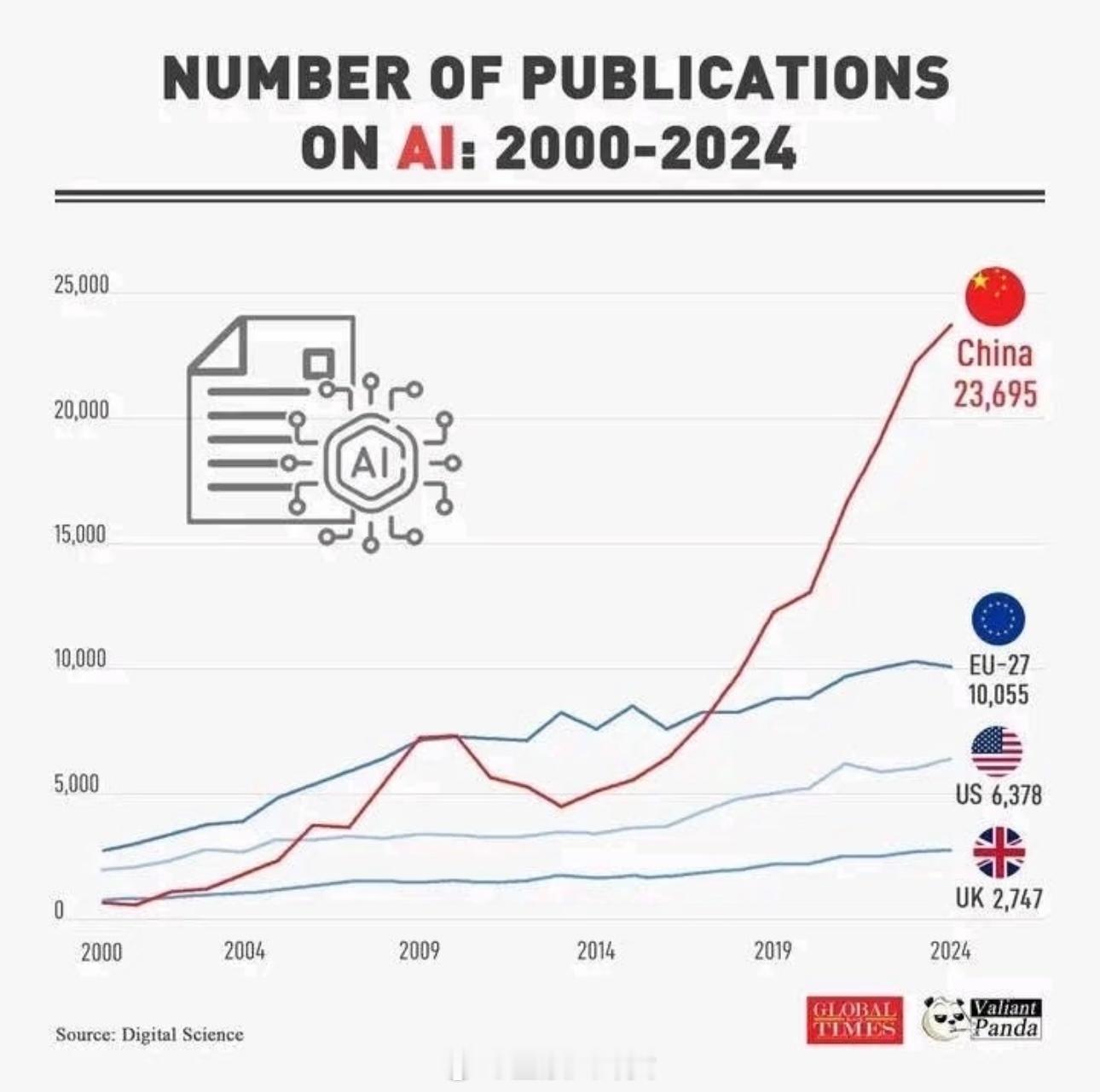 中国 AI研究论文发表量居世界第一[努力]
