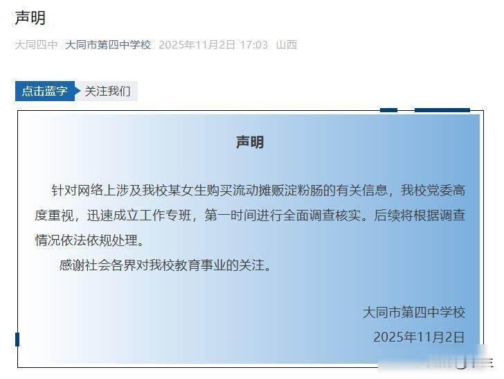 钥匙被收,女生哭喊,校园管理怎么了 周六下午,大同四中门口人来人往挺热闹,一位穿绿背心的工作人员收走女学生的电动车钥匙和家门钥匙,因为她在校外买了根淀粉肠,女学生急得直哭喊“还给我”,工作人员回了一句“看我给不给你”,视频传到网上后,大家看到这事都炸锅了。 第二天学校出来说明情况,承认确实发生这件事,校方正在调查处理,他们说视频内容有些夸张,拿走学生钥匙是为保护学生安全,并非故意为难学生,但这话听着让人不太信服,安全问题当然重要,可是收走别人家门的钥匙已经超出正常管理的范围,这件事做得不太妥当。 有人觉得学校做得对,认为路边摊卫生状况不好,孩子吃了可能拉肚子,管一管没什么问题,但也有人反对这种做法,指出钥匙属于私人物品,学校没有权力随意没收,法律专家表示,即便出于安全考虑,也不能超出合理限度,直接没收钥匙的做法显然不合适。 其实这背后不只是钥匙的事,这几年山西很多学校都在清理摊贩,因为上面有压力,下面执行起来就变了味,城管和学校一起行动,摊贩们没了活路,学生们想买点便宜小吃也找不着地方,一边是学校担心安全,一边是学生需要日常吃喝,结果两边都没顾好。 以前山东有中学没收零食,结果被教育局叫停了,杭州那边试了个新办法,让学生举报摊贩就能加分,不用收东西,效果反而更好,大同四中这次还是按老办法来,光靠收东西解决问题,根本没想着去沟通或者引导学生。 目前还有一些关键问题需要澄清,比如接收钥匙的人员身份是保安、教师还是临时工,钥匙是否已经归还,家长是否向学校提出正式交涉,以及流动摊贩是否存在屡次整改无效的情况,这些细节的缺失导致事件难以得到清晰说明。 学校保护学生的初衷是好的,但做法太生硬了,反而让学生感到心寒。当孩子哭着要回钥匙的时候,学校和孩子之间的信任可能已经动摇了,这种伤害远比吃一根淀粉肠带来的风险大得多。