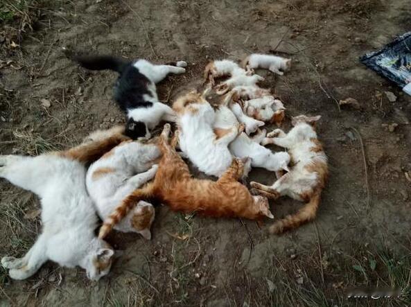 太可怜了,一位阿姨经常投喂村子里的流浪猫,这天她和往常一样去投喂流浪猫,可结果却一只都没有看到,于是她就开始寻找它们。 结果在一块空地上看到了令她痛不欲生的一幕,几乎她投喂的所有流浪猫都被丢在了那里,包括几只很小的小奶猫,看样子是被毒杀的,因为所有的猫都没有任何伤口,也不知道是谁如此心狠手辣集中毒杀了它们。 怎么说这些猫也是有贡献的啊,有了它们,村里的老鼠都少了很多,可他们为何要这样对待这些可怜的流浪猫,最终阿姨只好和几个村民一起安葬了这些可怜的流浪猫。