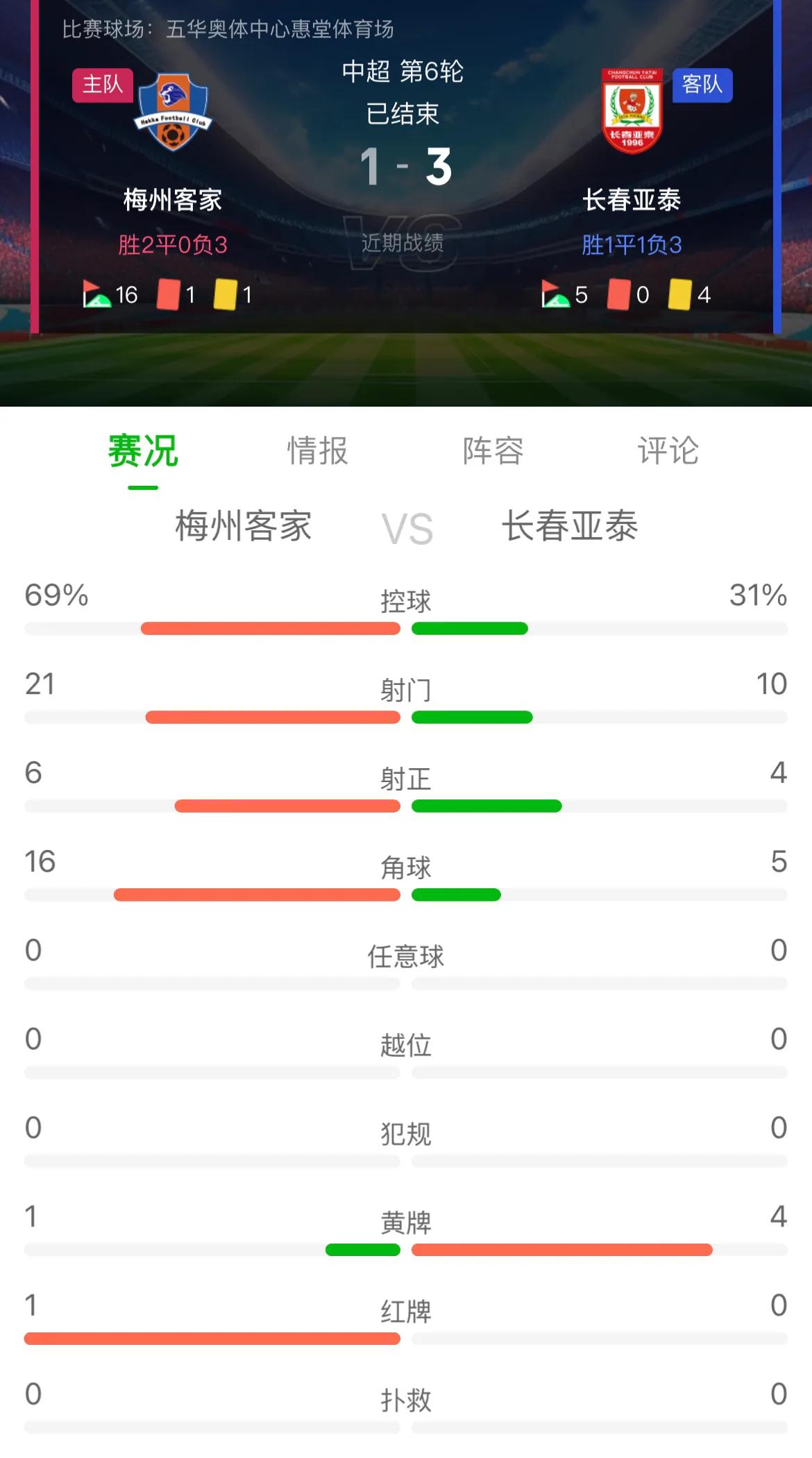 长春亚泰3-1梅州客家,谭龙惊天吊射破门,产生三个难以置信! 一、难以置信身处降级区的长春亚泰居然客场干翻了联赛第9的梅州客家,客场打出3-1的比分,长春亚泰这是上一场被打醒了吗? 二、难以置信谭龙能半场吊门,这球太疯狂了,谭龙作为即将退役的老将还能有这么好的状态,已经连场破门了,还是这种神仙球,真是宝刀不老啊? 三、难以置信梅州客家空有69%的控球率,被只有31%控球率的长春亚泰干了3个,梅州客家是有多浪费机会呀,长春亚泰把握机会能力这么强了吗? 难以置信,恭喜谭龙!