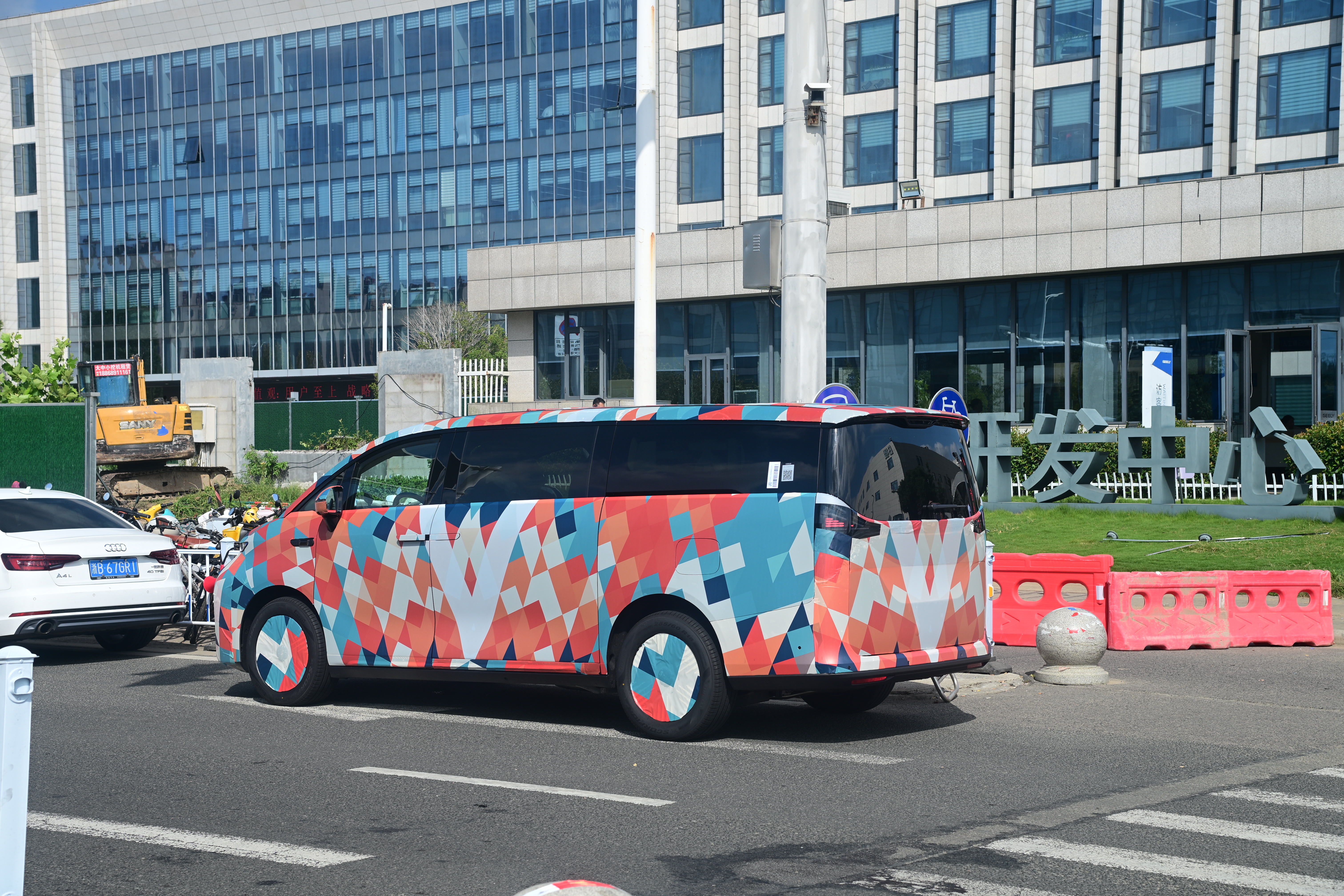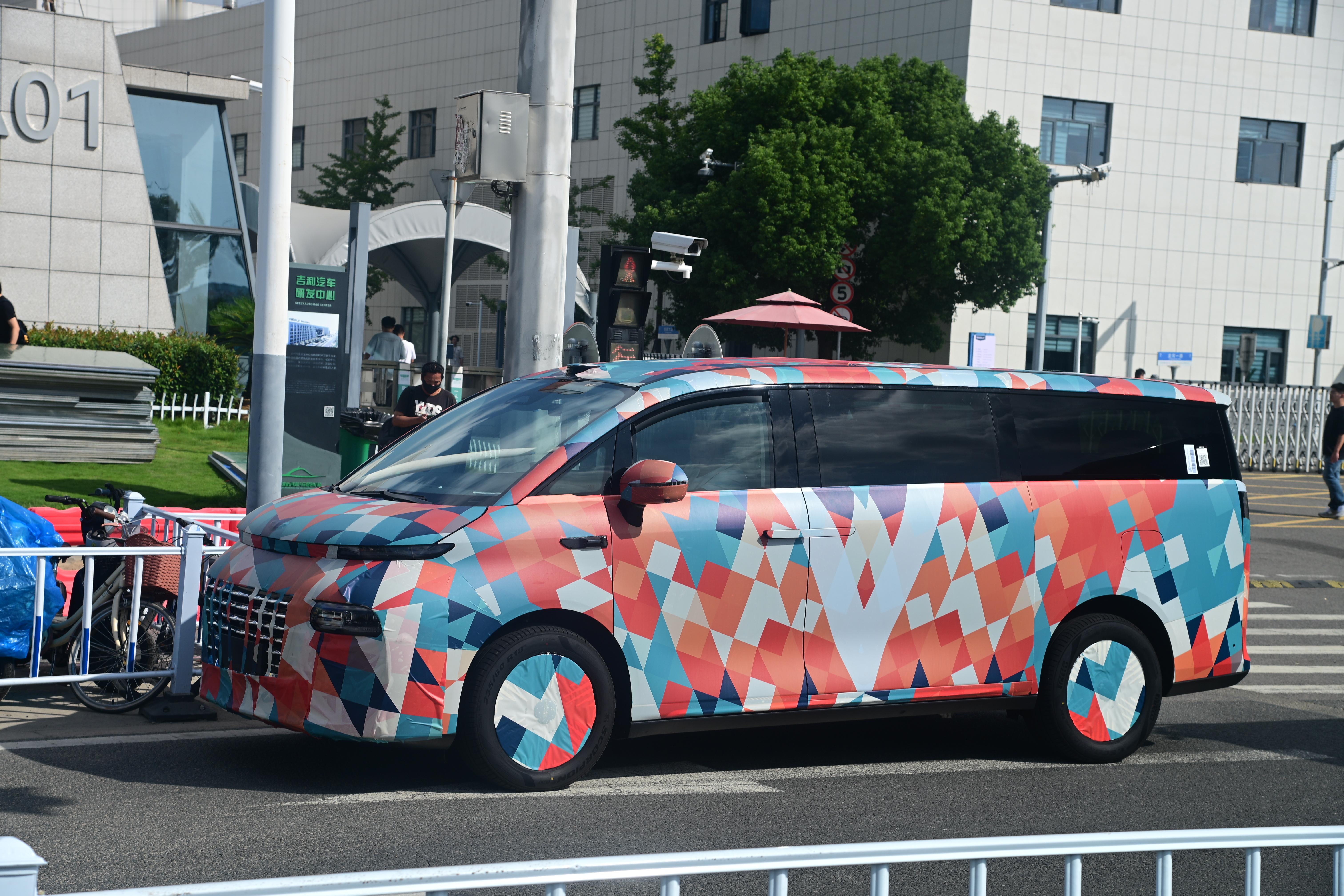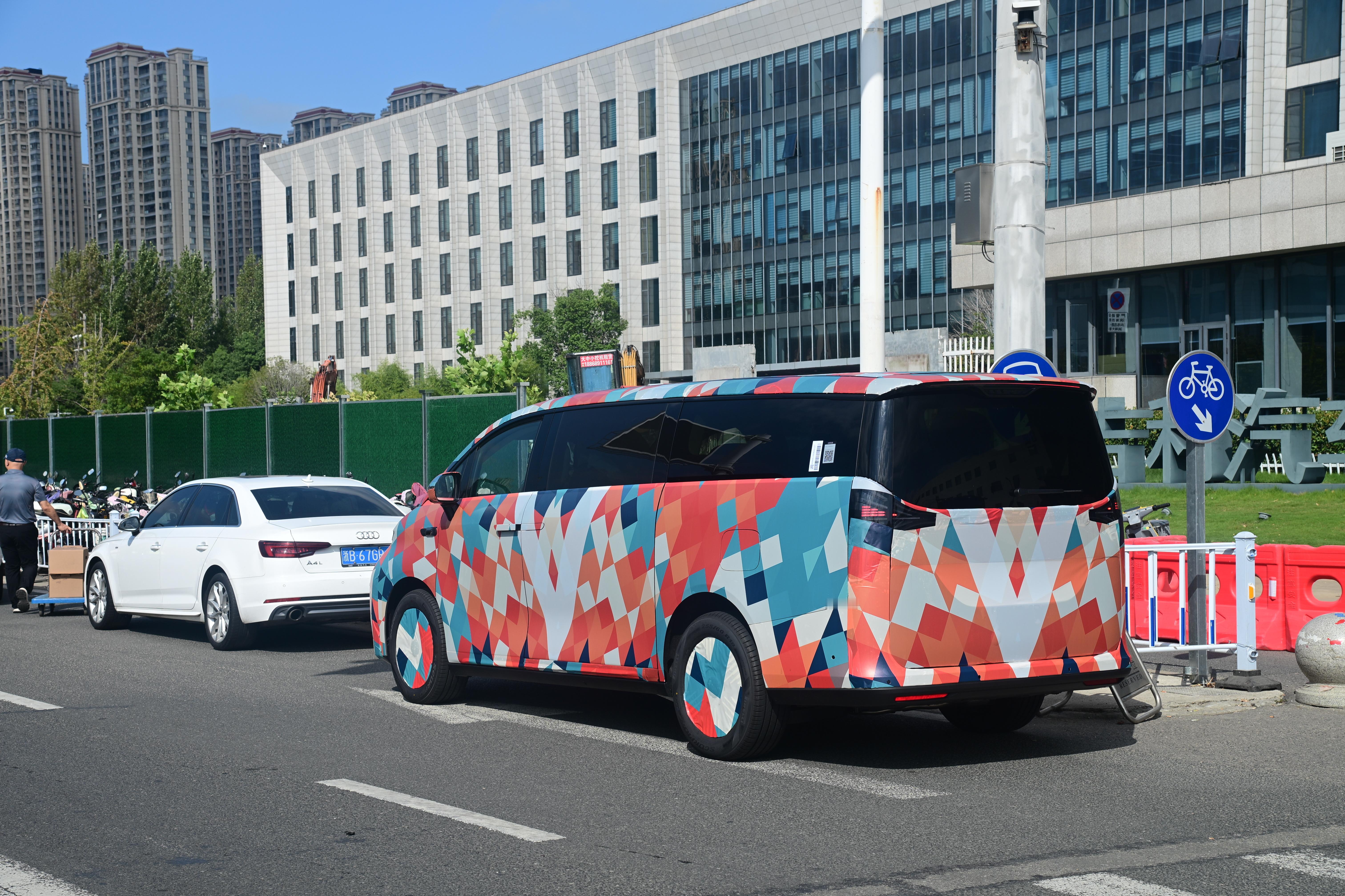 吉利全新伪装车曝光,经典的MPV轮廓,车身带有巨大V字涂装,B柱及尾部设计与埃尔法极度相似,看来杭州湾“埃尔法”真的要来了!杭州湾埃尔法吉利汽车
