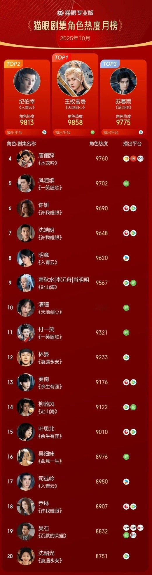 成毅王权富贵开播仅7天登顶10月全网热度最高角色冠军!🔥🔥🔥
