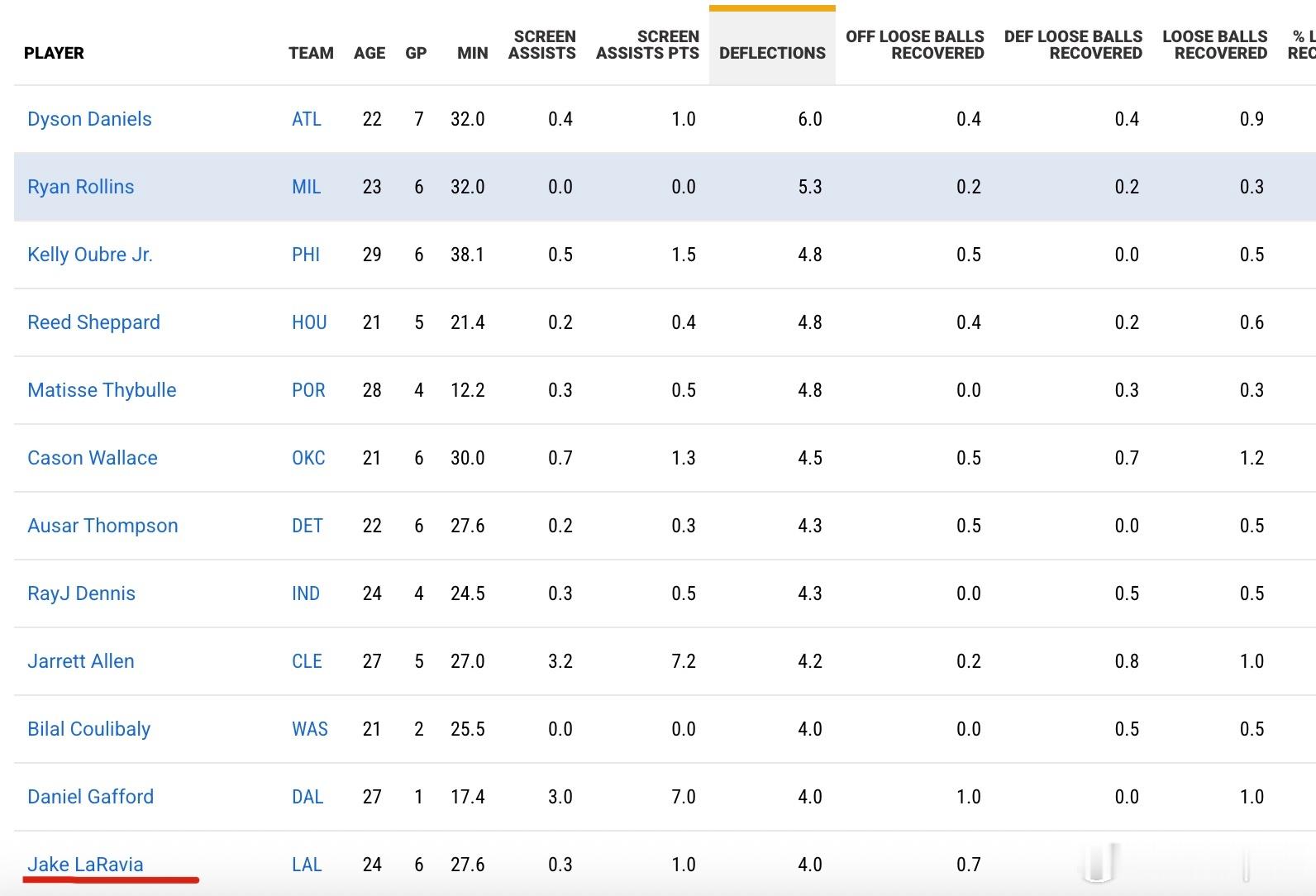 他的各种hustle数据也很不错,尤其是deflection。现在还有斯玛特做队友,他的防守端应该还有提升空间。