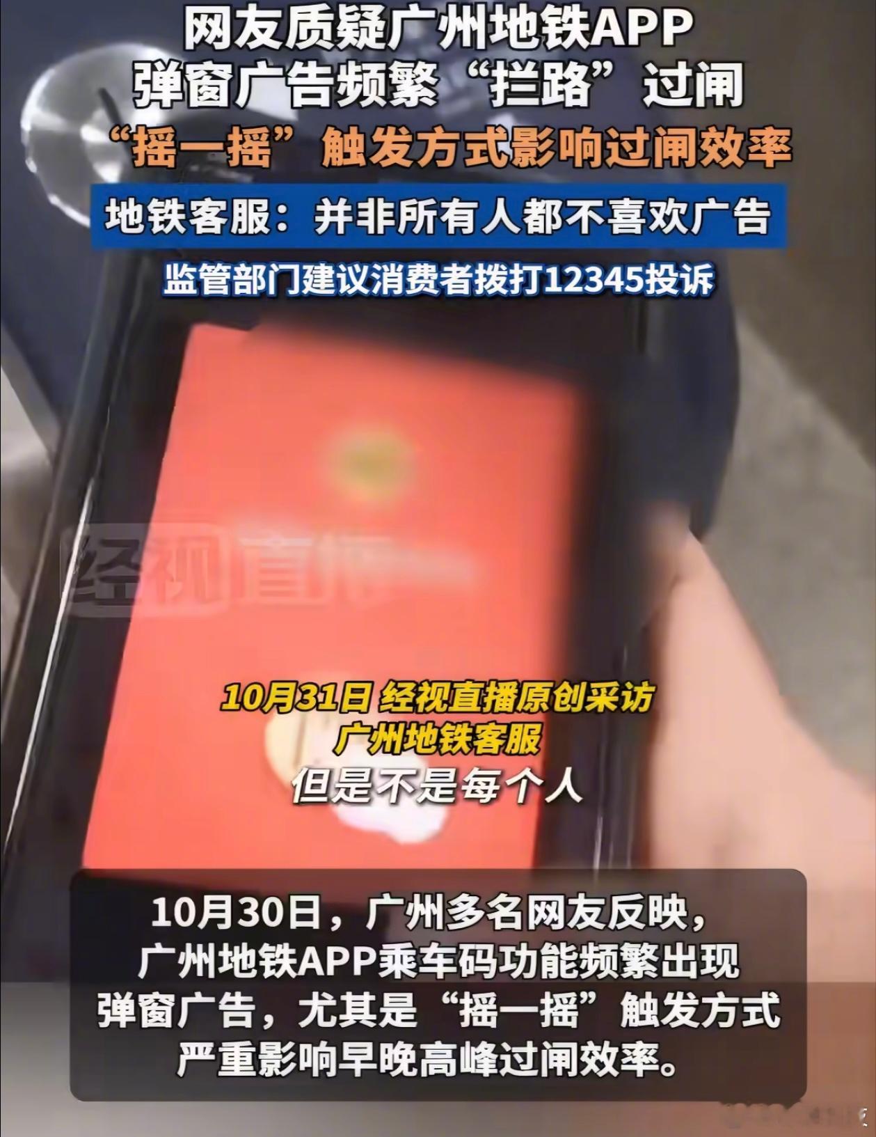 广州地铁:乘车码摇一摇广告已立即关闭。