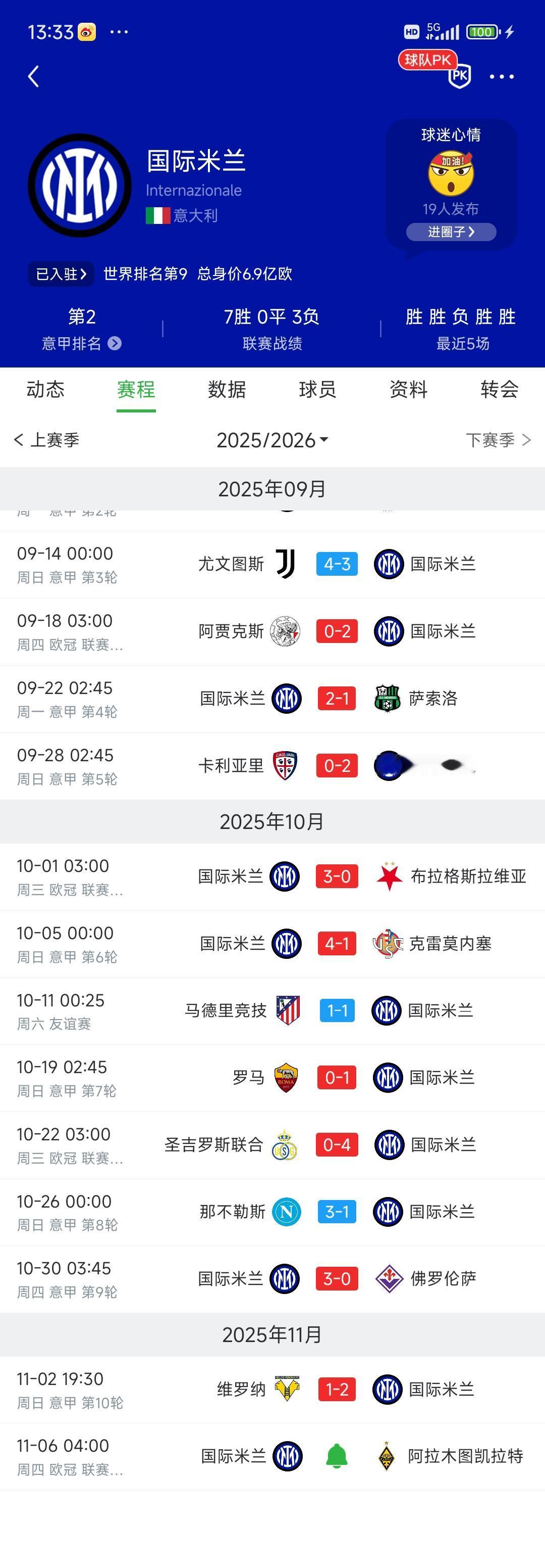 国际米兰自从3比4输给尤文图斯之后,仿佛开窍了,又跟上赛季一样的成绩! 最近9胜1平1负,平的是马竞,输给那不勒斯,其他比赛全赢。 意甲差那不勒斯1分,排第二。 欧冠是意甲表现最好球队,排名靠前。 这不就是上赛季的国米吗,唯一缺点硬仗不行,还是输给更强的球队,导致无冠。 所以国际米兰球迷很慌,怕噩梦重演。 特别是那不勒斯踢欧冠一塌糊涂,又要死保意甲冠军,国米还得双线??[笑哭][捂脸]