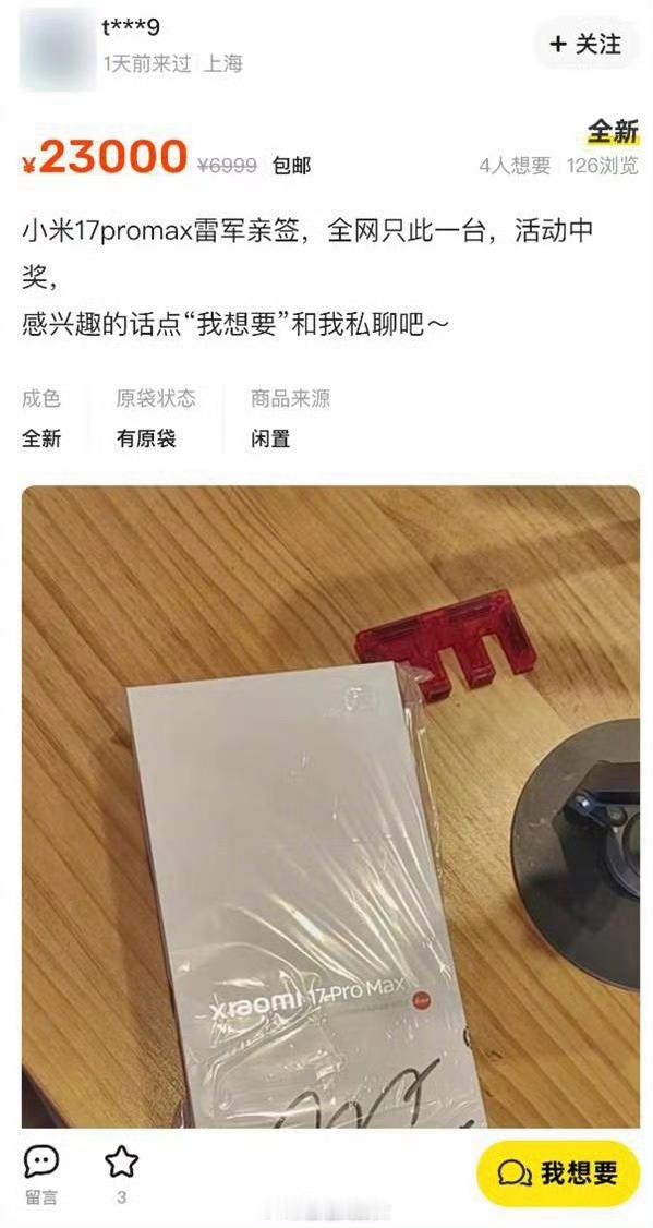 雷军签名版小米17 ProMax现身闲鱼,售价2.3万元,会有人买吗[傻眼]