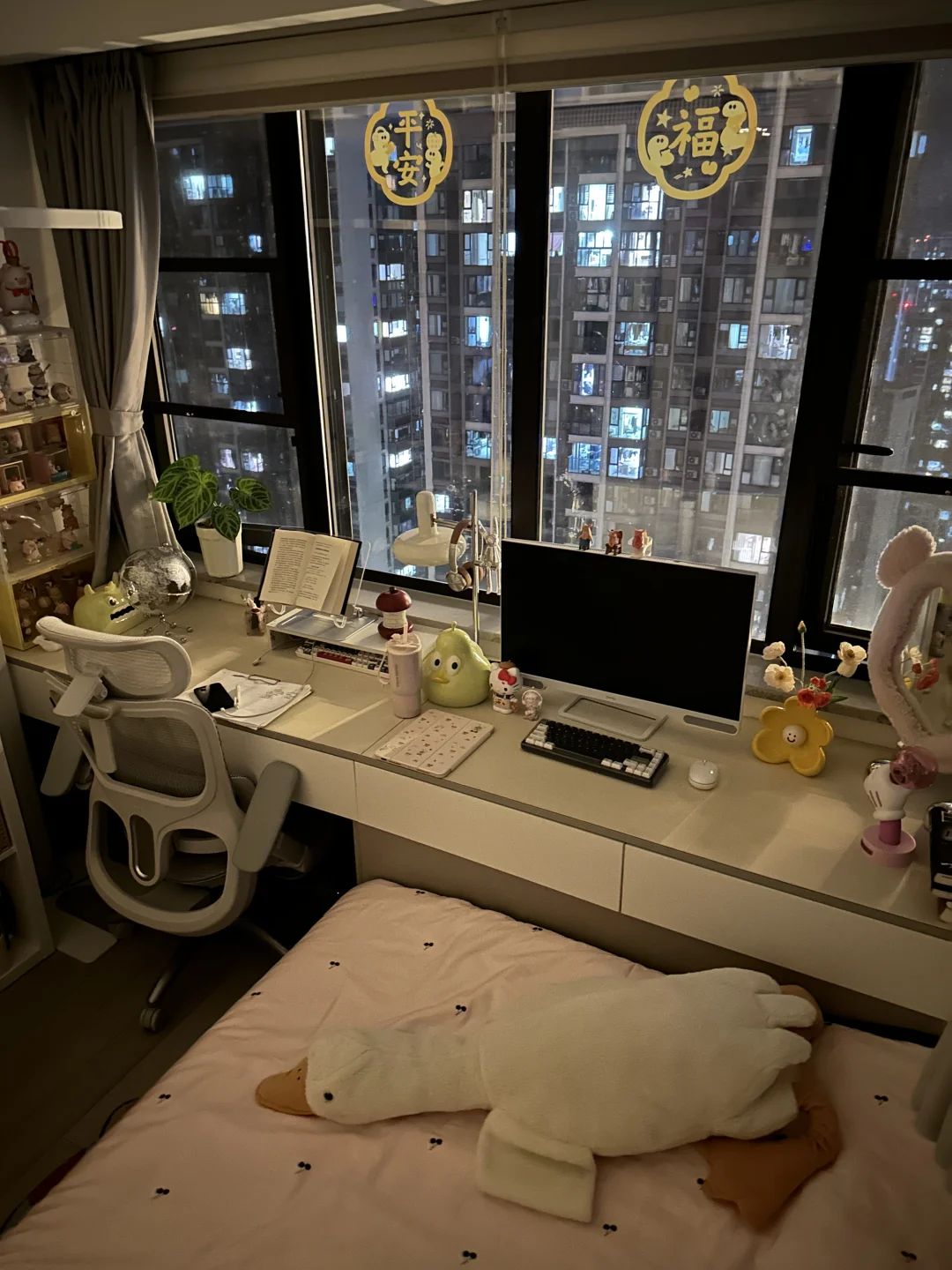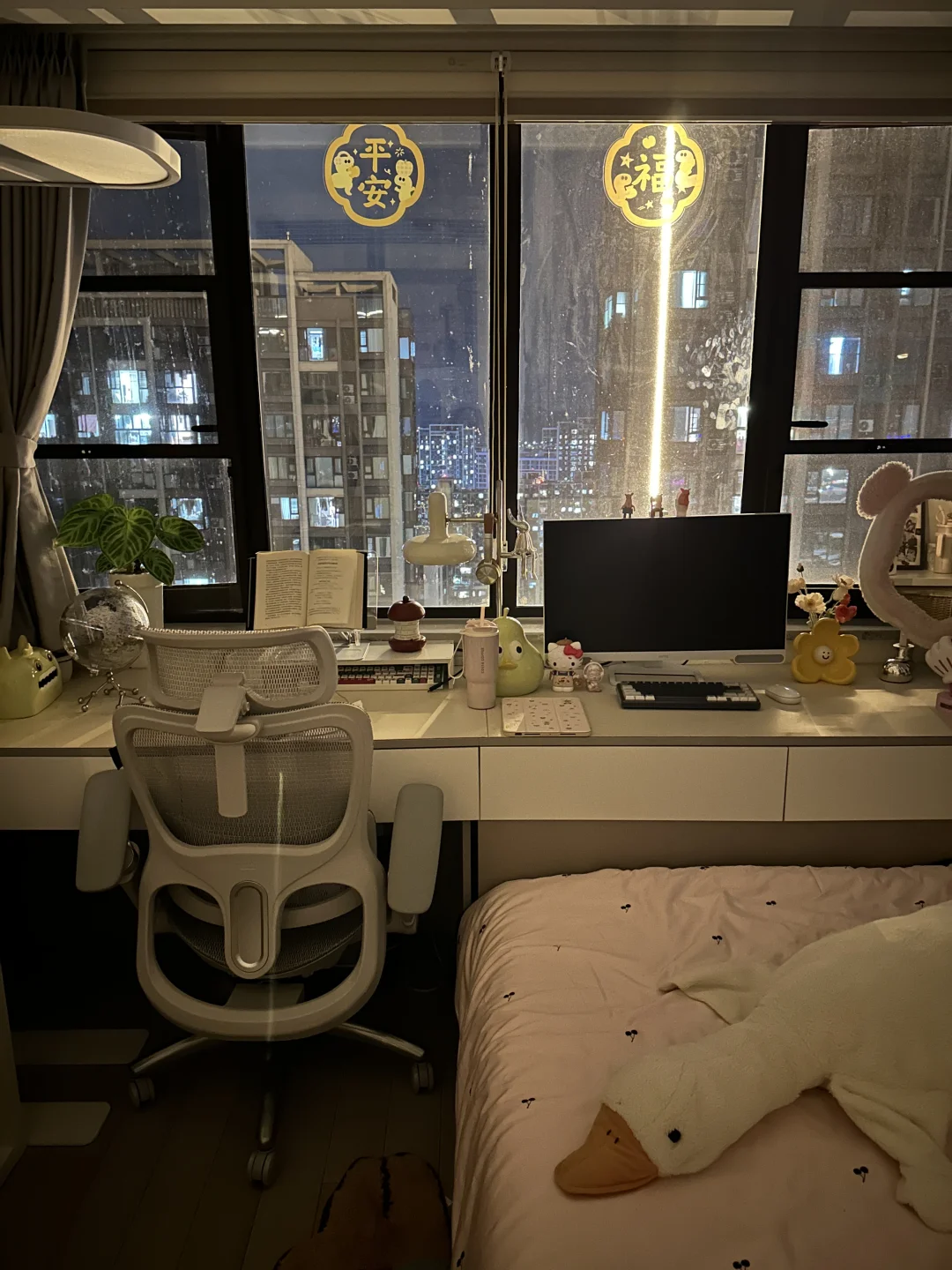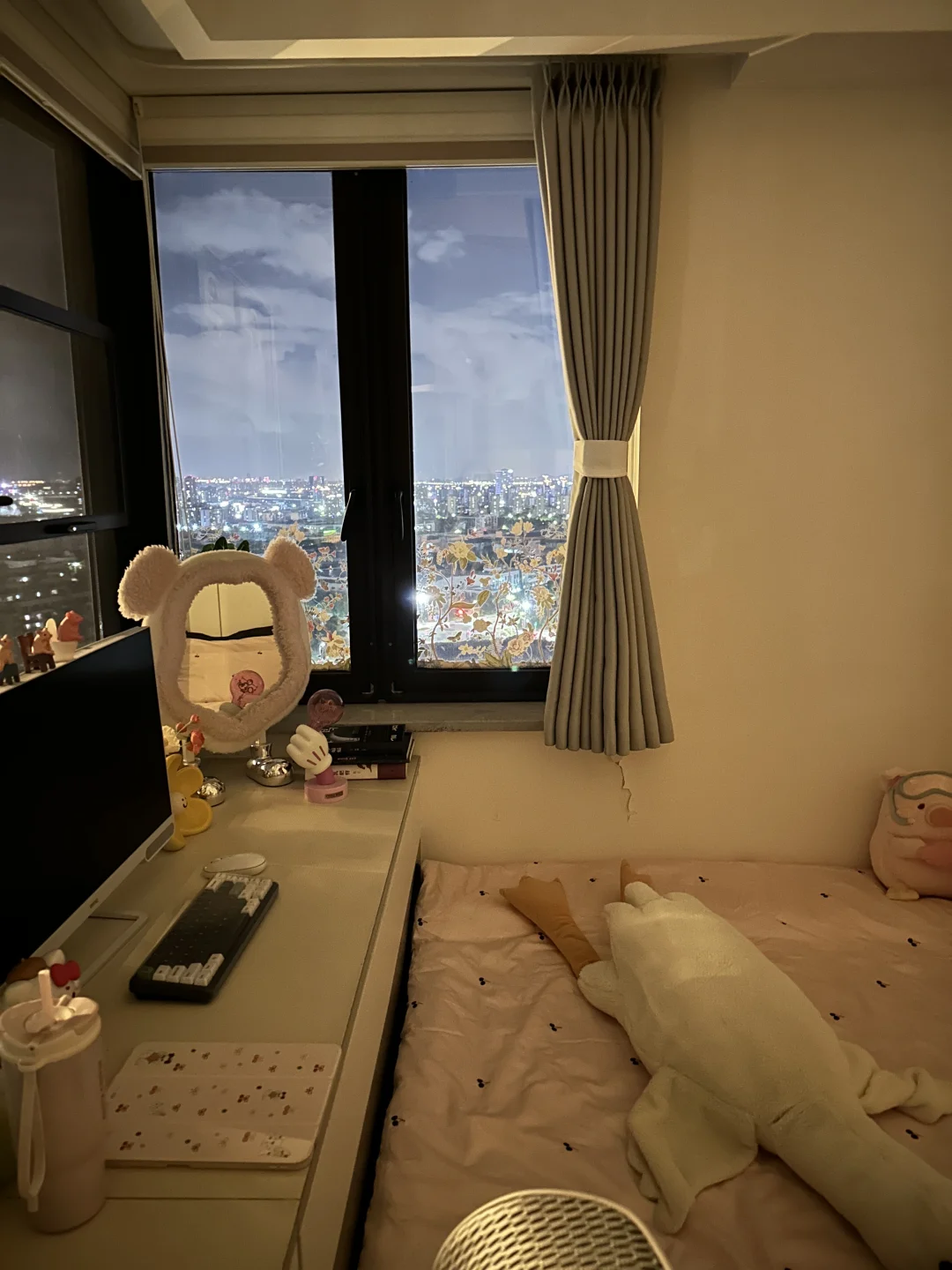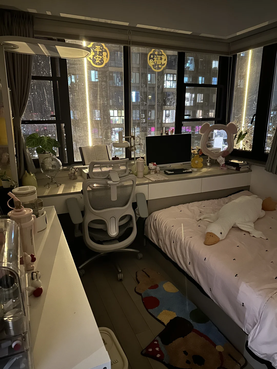 好多宝子喜欢我晚上的卧室,看起来很温馨,尤其是天冷之后,对面橘黄色的灯带再照射进来,铺上软和的绒绒床单,右侧小窗户🪟还能看见外面的夜景💫,就觉得小卧室可以一直宅下去[哇R]