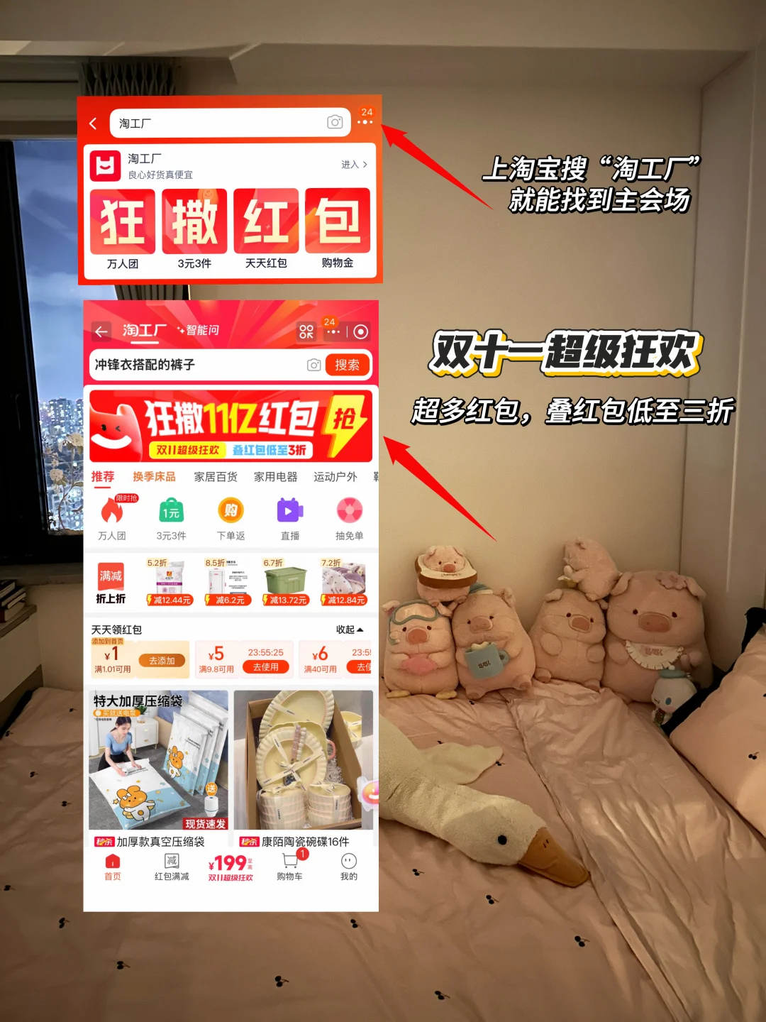 上淘宝搜淘工厂,最近双十一很多入冬小物件都限时秒杀,还有双十一爆款立减,叠加红包最低可以达到3折,超多满减红包可以领取,凑单更划算!花小钱办大事,一起准备温暖过冬呀!