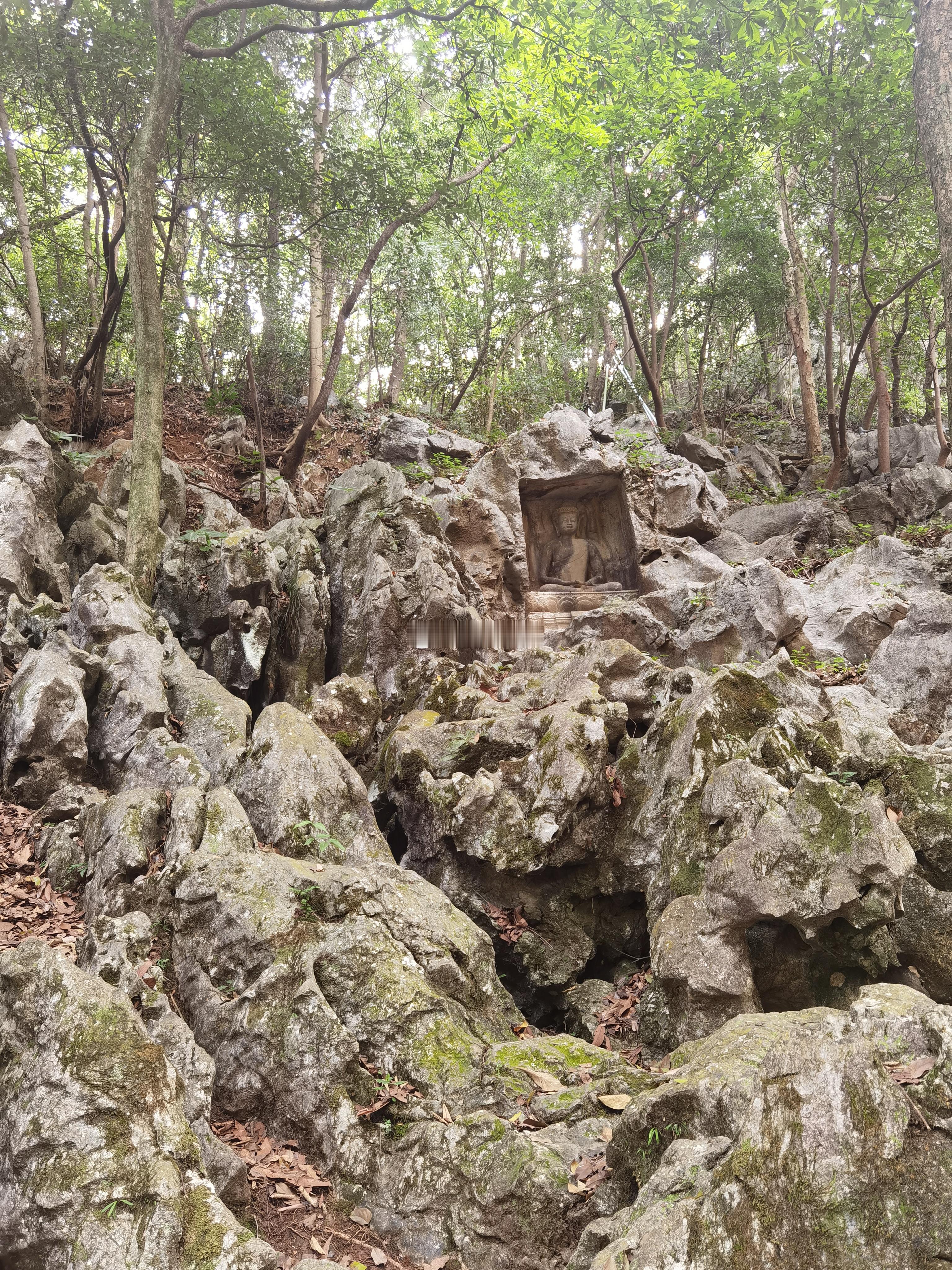 《11月3日,游灵隐寺》桂雨沾衣入院幽,梵音轻绕古松头。山僧不话人间事,只指云深