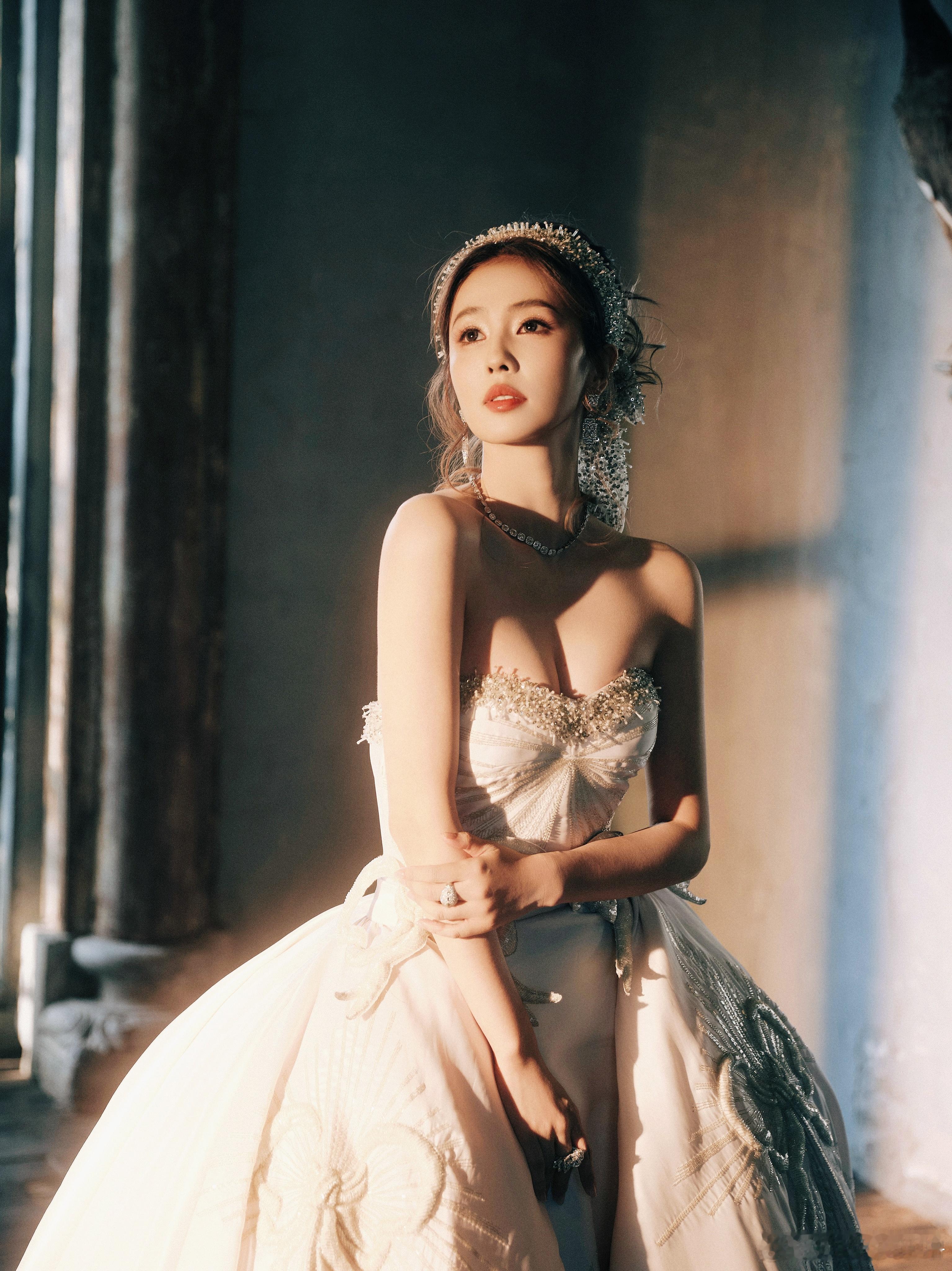 今日份限定亚麻灰发色!很不一样的头饰尝试 漂亮的脸蛋 美丽的妆造高定礼裙 契合妆造的置景摄影 完全就是古堡里的美丽优雅公主✨👸🏻