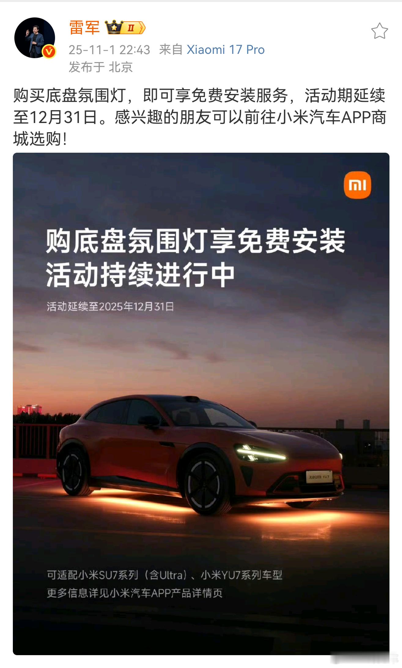 购底盘氛围灯享免费安装,大家感觉如何?[喵喵]