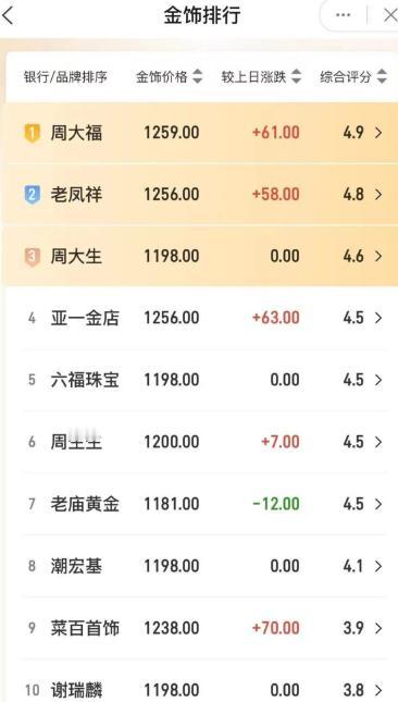 11月3日,国际黄金探底回升,重回4000美元上方。 金饰克价反弹,周大福、亚一、菜百一夜涨超60元/克 这价格就跟有人在背后捣鬼一样,上蹿下跳地没个准谱。 前几天伦敦金直接跌破3900美元, 国内品牌金饰价格随之调整。老庙黄金足金饰品报价1256元/克, 较前一日1193元/克上调63元/克,单日涨幅5.28%; 周生生报价1255元/克,较前一日1193元/克上调62元/克,单日涨幅5.20%; 周大福报价1259元/克,单日涨幅5.09%; 六福珠宝报价1259元/克,单日涨幅5.09%。 就是美元在那边反复横跳, 硬是把黄金价格从4300美元的高点给砸了下来, 跌幅记录都搞出来了。 还是得有我们自己的定价权,不能总看别人的脸色行事。
