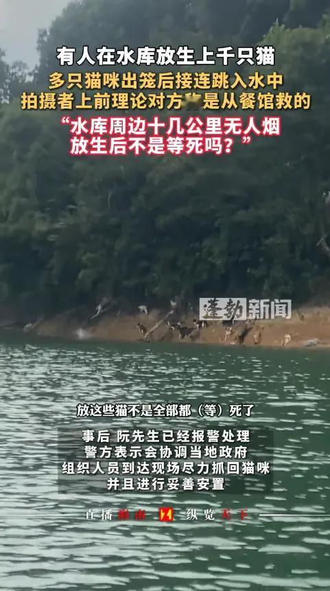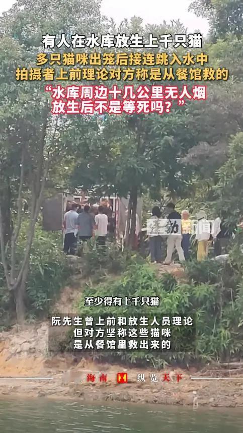 11月1号广东清远水库边, 钓鱼的阮先生听对岸有动静, 看到一群人围着三辆货车在放猫,说是从餐馆里救出来的。结果上百只猫受惊跳进冷水里,附近十几公里没人烟,没吃的活不下去,尸体还可能污染水。阮先生劝不住就报警了,警察后来把能抓的猫都拉走了。 放生本来是好事,可乱放生等于害它们。有人专门抓流浪猫狗卖给餐馆,再有志愿者"解救"然后去偏远地放生。这流程其实被黑心商人当赚钱路子,放生成了生意的一部分。 最近几年城市流浪猫狗多了,但背后藏着非法捕捉和交易,很多放生组织根本没考虑动物后续生存问题。这事儿虽然处理了,但根儿上问题还没人真管。