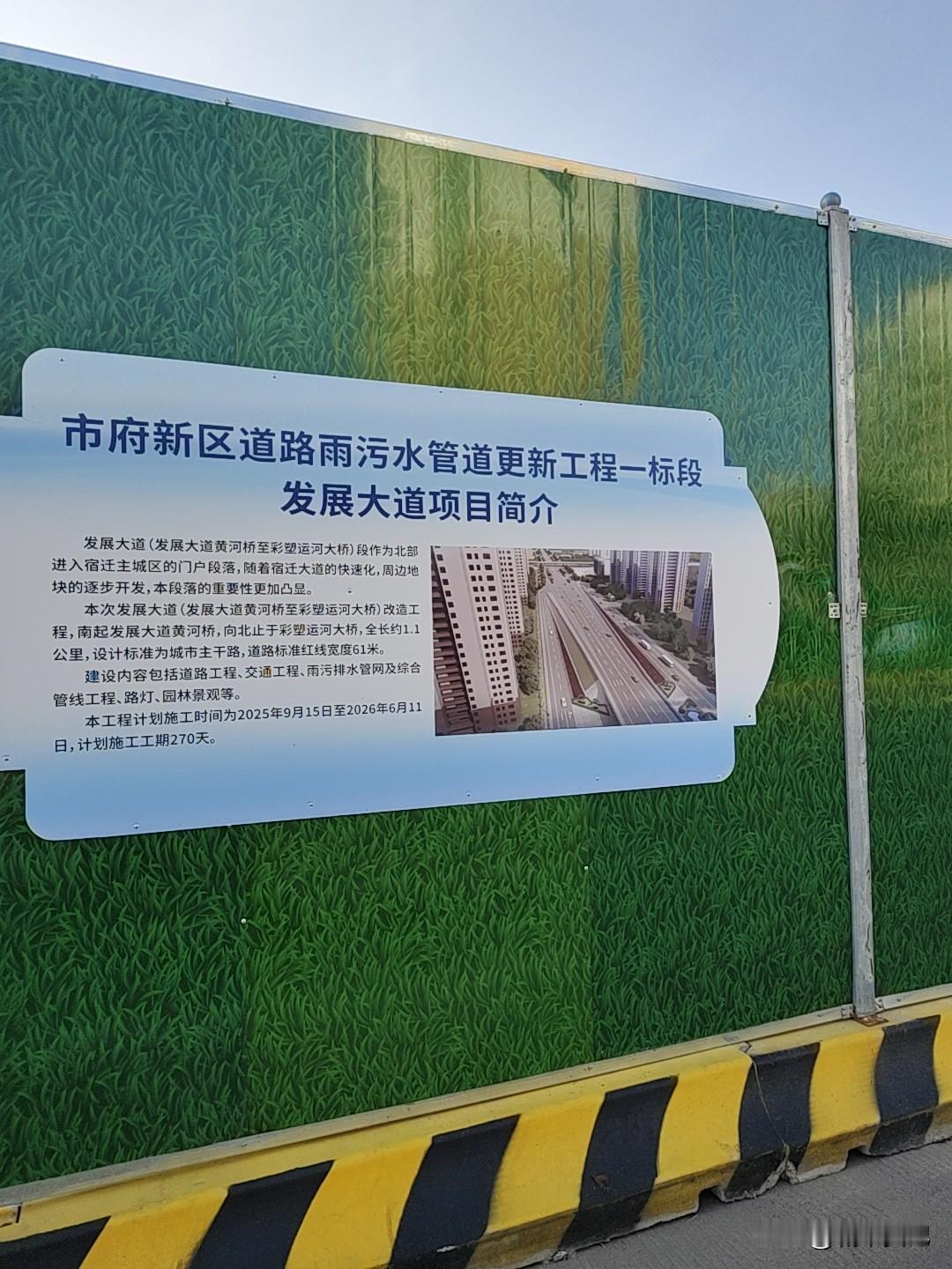 宿迁发展大道改造了,更好衔接宿迁大道高架路,这段也是以前的水泥路,正好趁这次彻底改造好。 水泥路面也是坑坑坑洼洼的,在改造以下雨污管道。非常好。