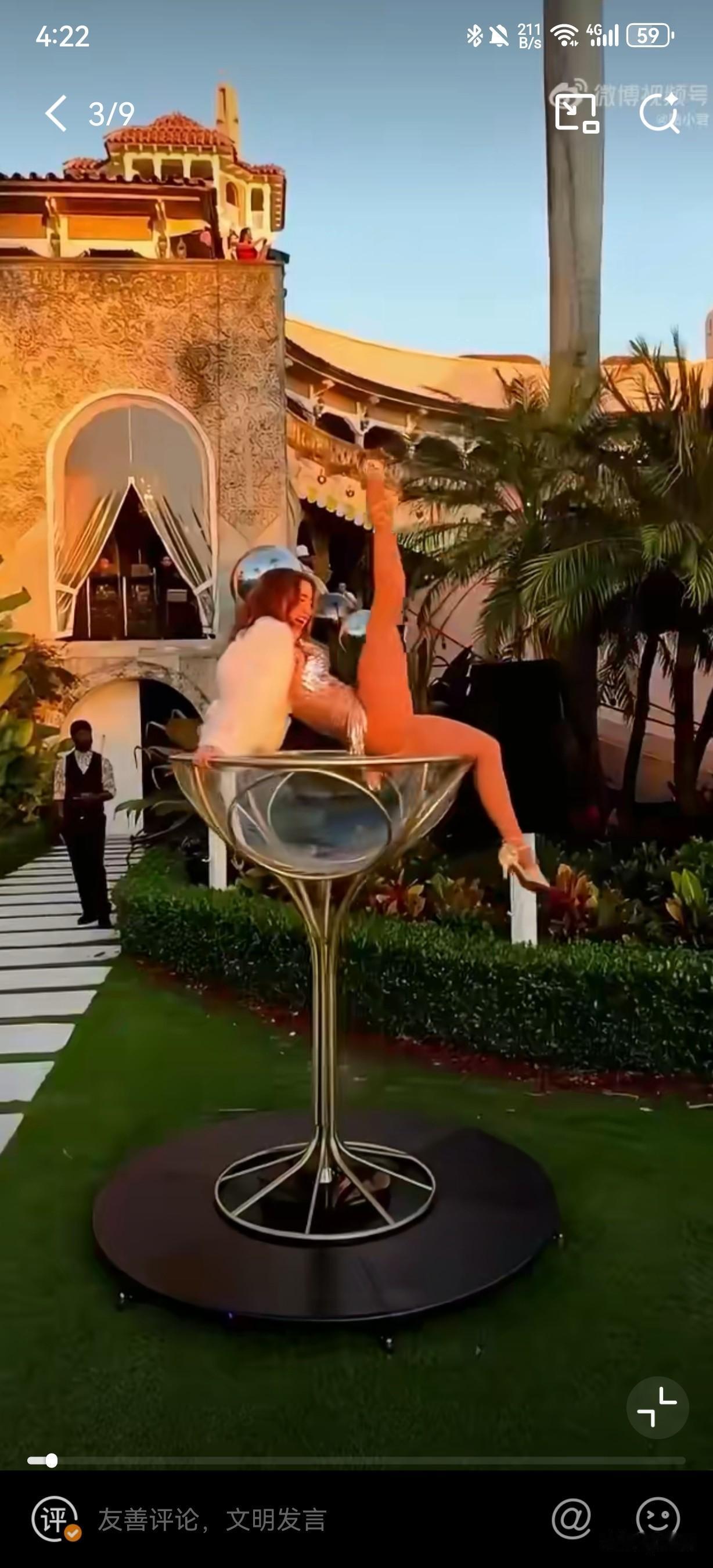 飞燕能作掌上舞,川普在海湖庄园举行万圣节派对,现场名流大咖齐聚一堂,一位女艺人在海湖庄园杯中跳舞……汉成帝刘骜宠爱赵飞燕和赵合德姐妹,其中赵飞燕以舞姿曼妙著称,可在“水晶盘”上跳舞,留下了“飞燕能作掌上舞”的典故。这个现代女艺人可与赵飞燕一较高下啦!