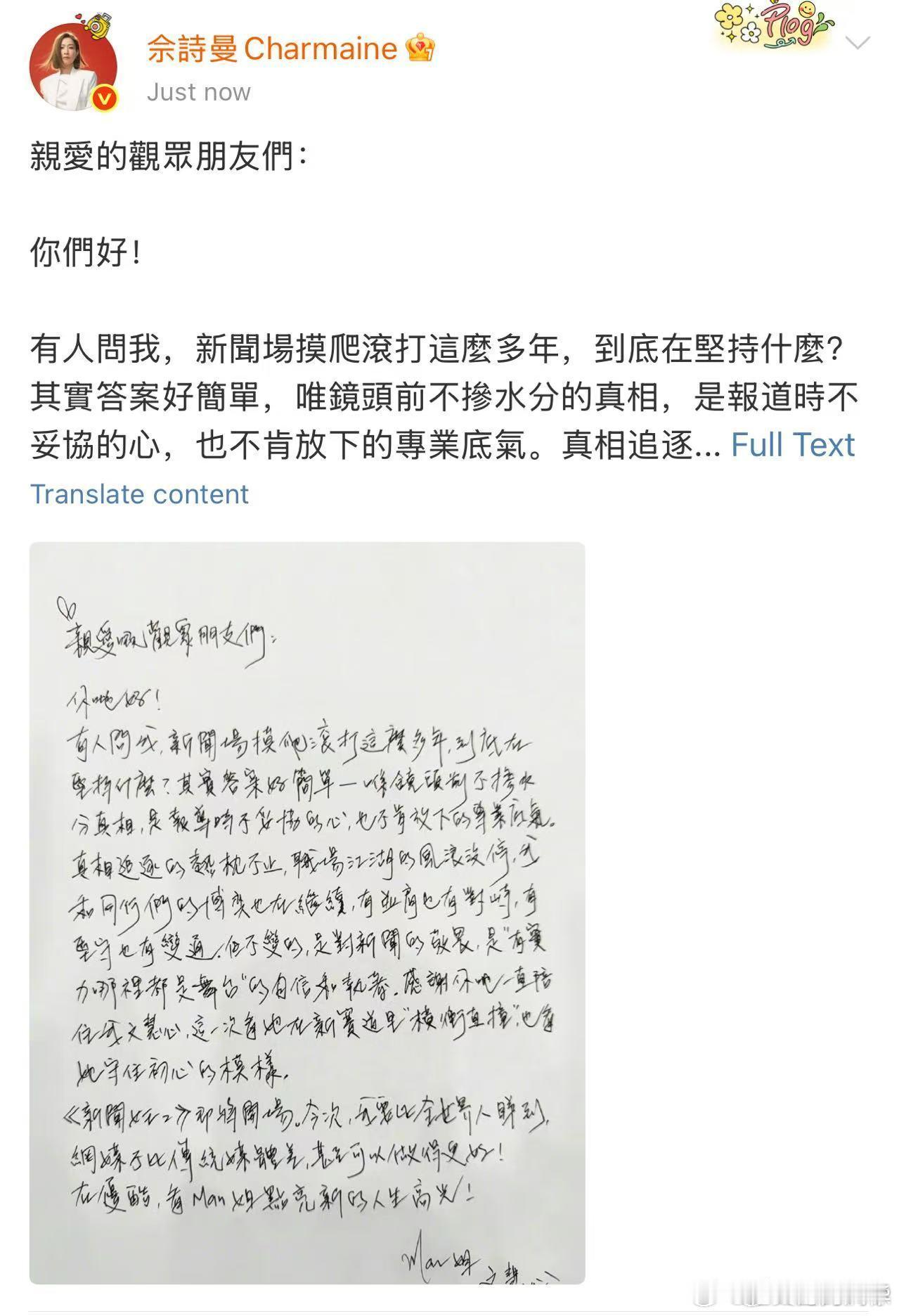 佘诗曼还是那么爱文慧心 佘诗曼把文慧心的魂带到现实!手写长信满是新闻人专业底气,从剧里霸气到剧外为《新闻女王2》发声,角色与本人的执着共振,观众直接梦回新闻战场!