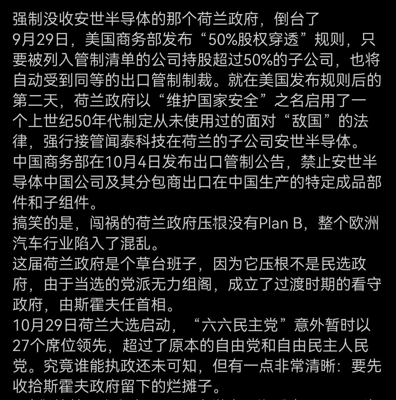 强制没收安世半导体的那个荷兰政府,倒台了!