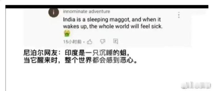“印度是一只沉睡的蛆,当它醒来时,全世界都会感到恶心。”-一尼泊尔网友。