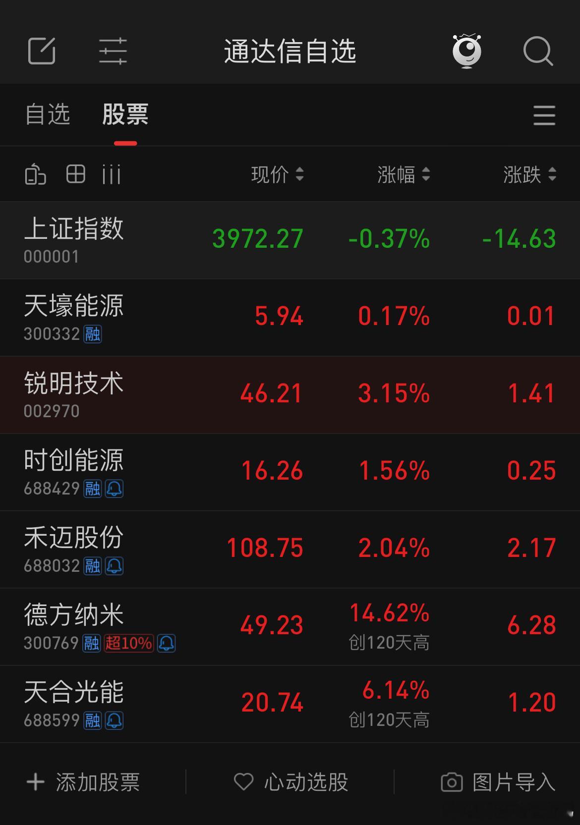 有朋友问你说的光伏和电池是哪几个票,一看就知道没怎么看过我发的动态内容,可以去爬楼看看,近期自选一直是这几个票,毕竟平时看股不多,精力不在此!!