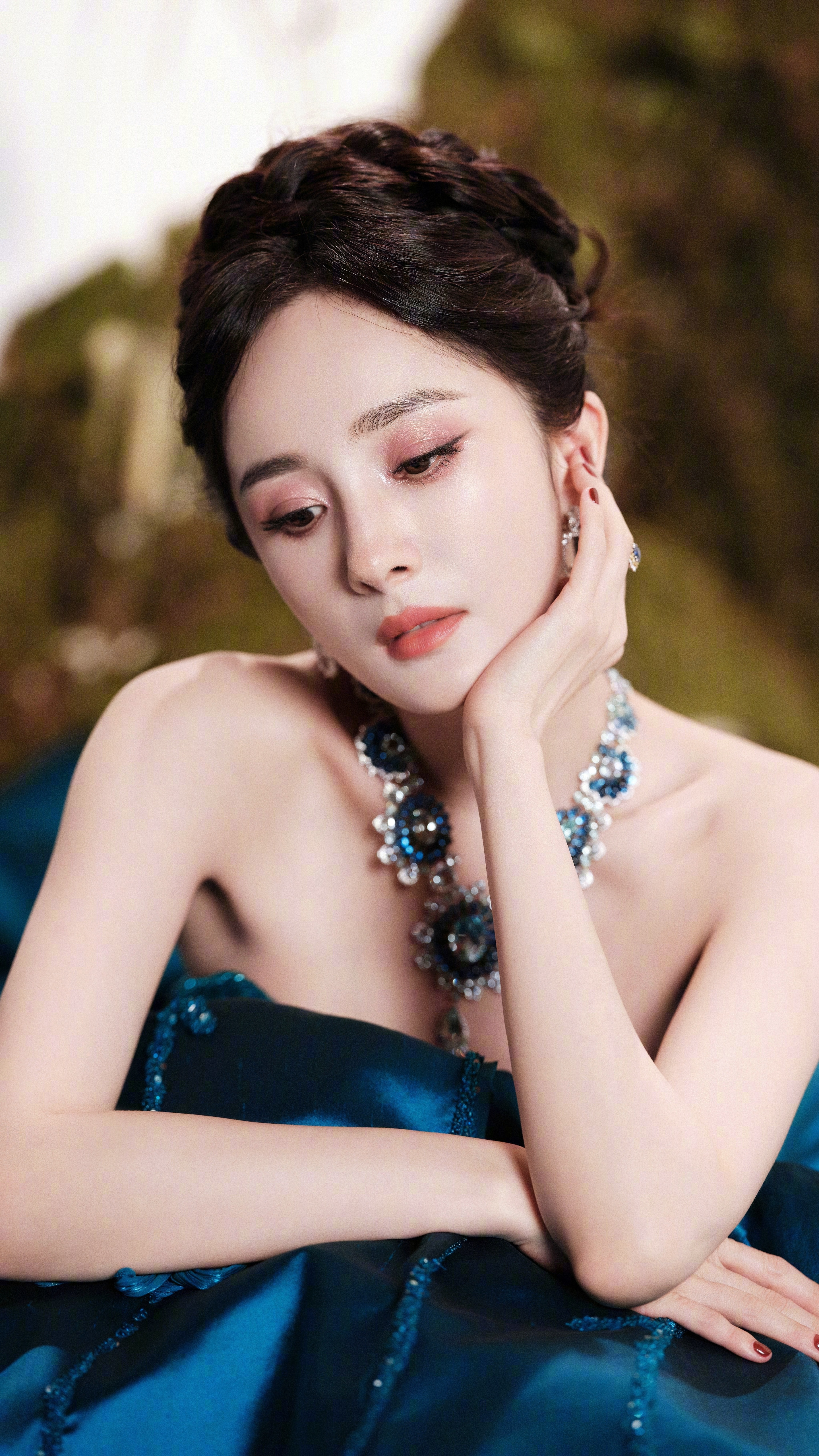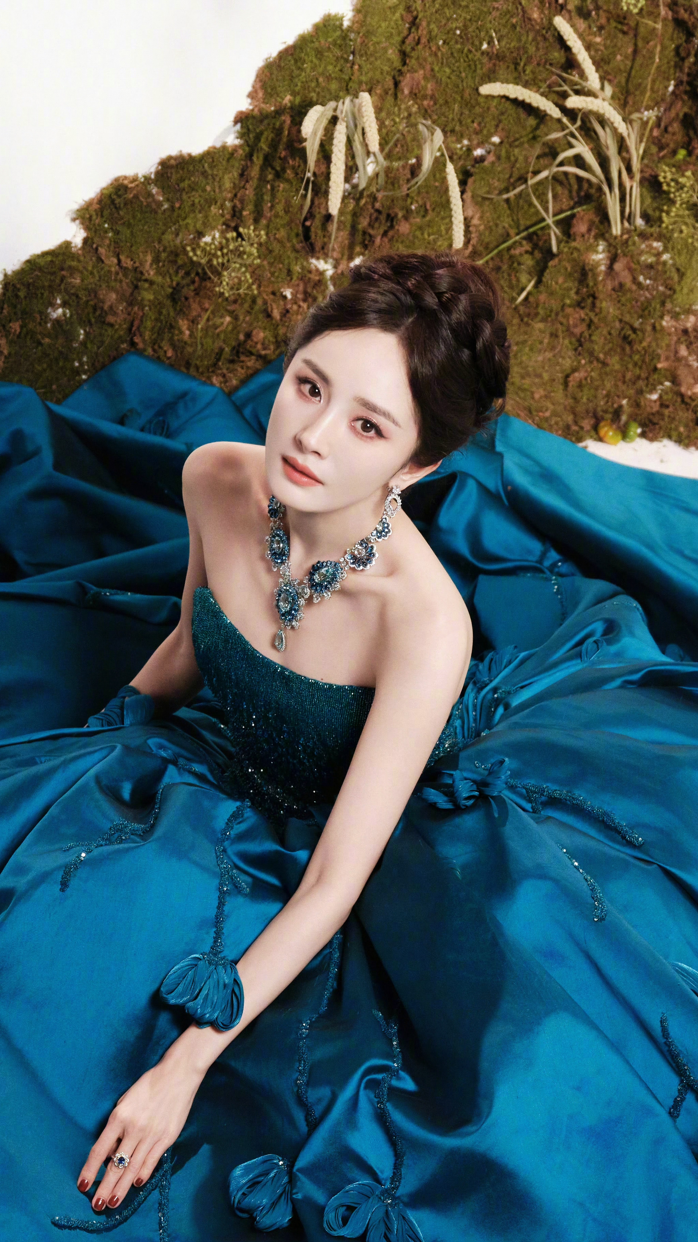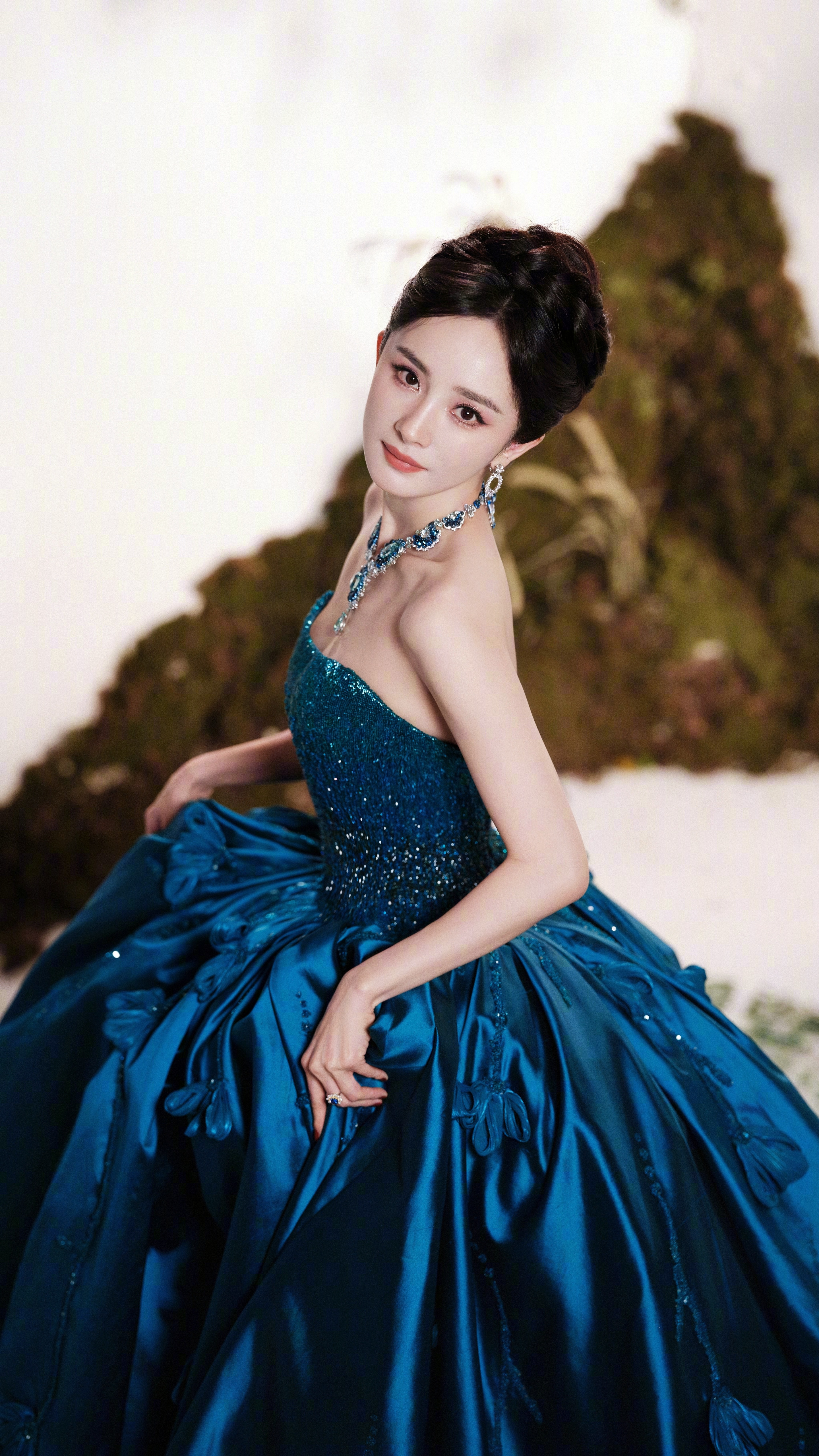 杨幂的蓝孔雀女王look,尽显优雅高贵[喵喵]