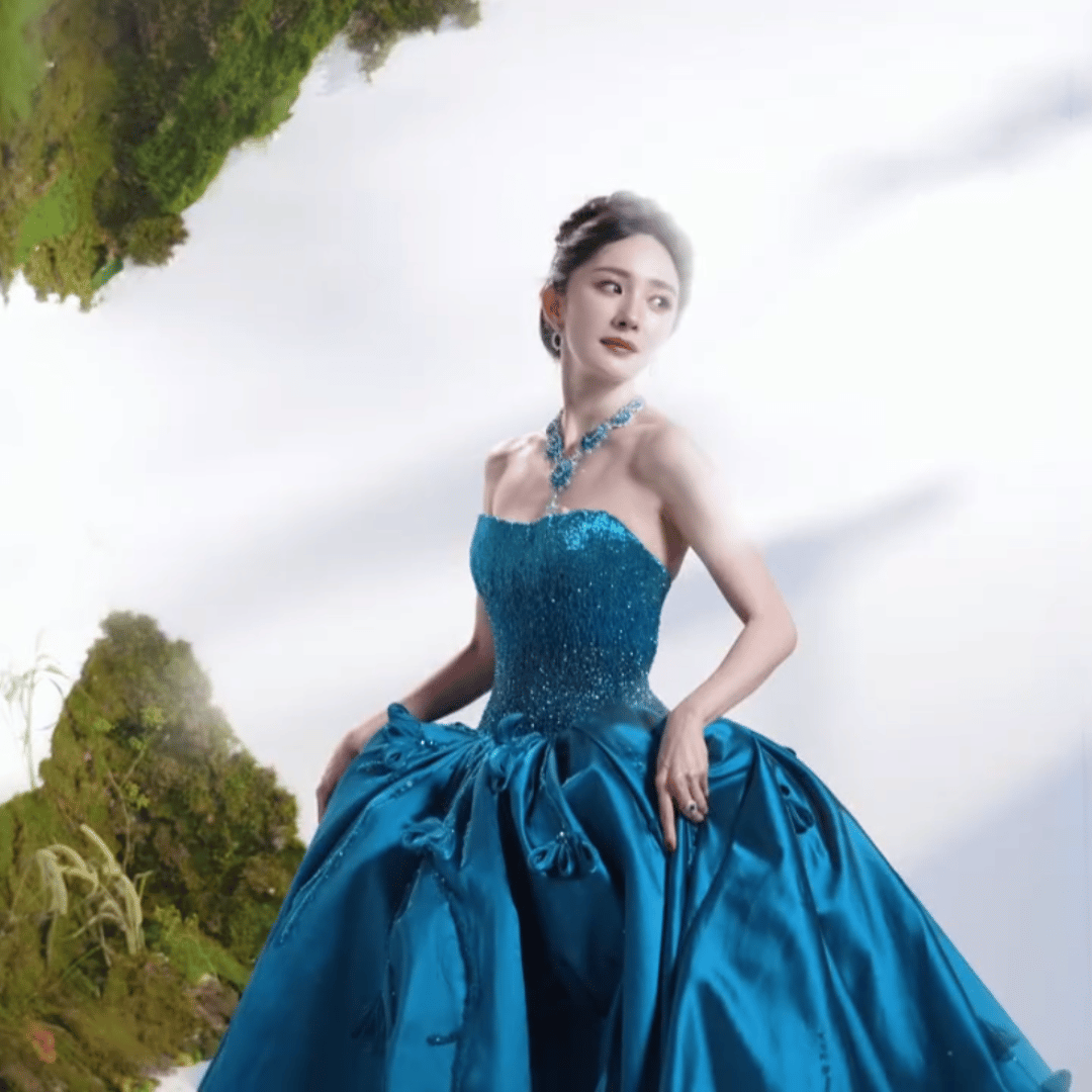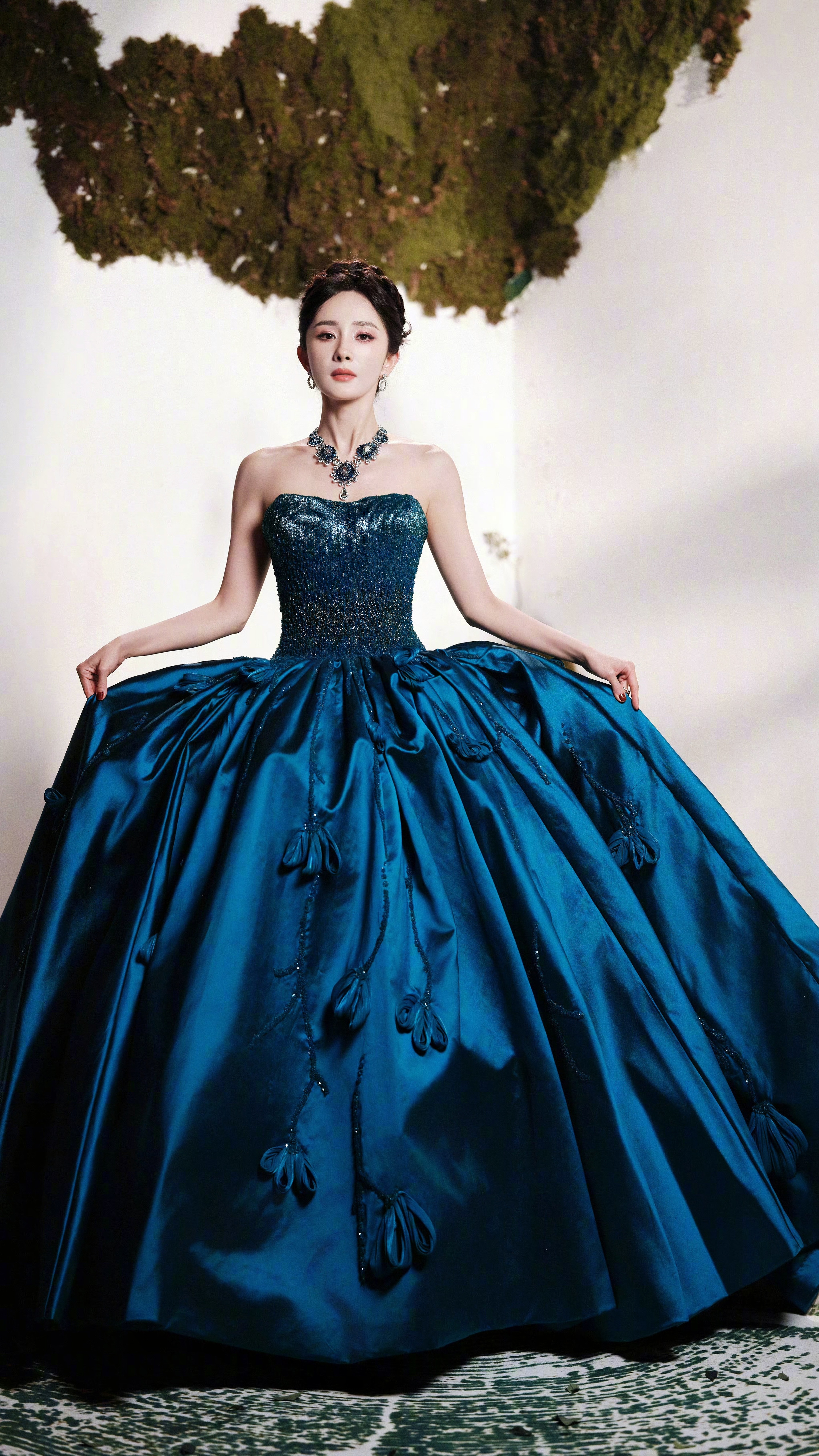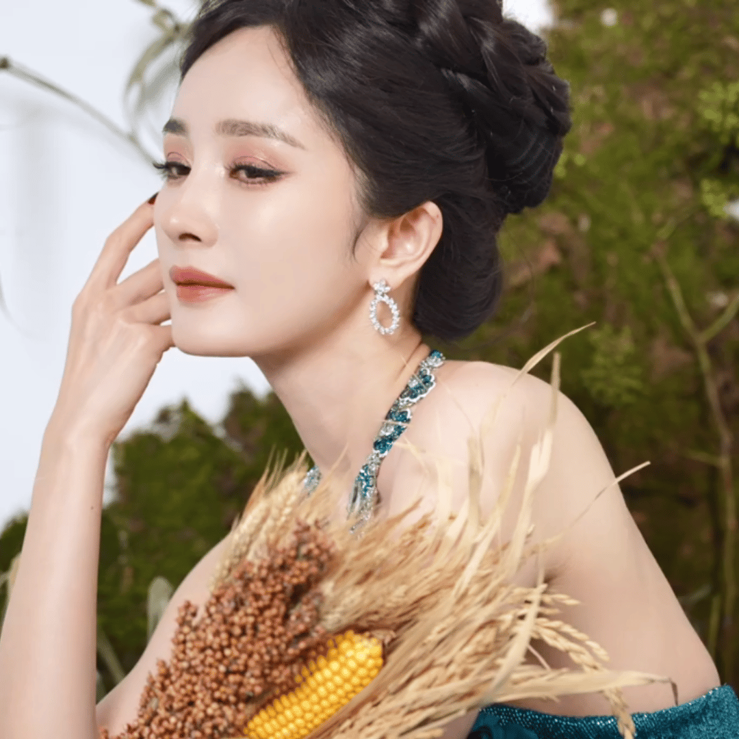 杨幂的蓝孔雀女王look,尽显优雅高贵[喵喵]